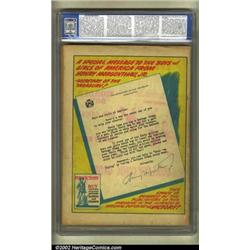 Hit Comics #23 (Quality, 1942) CGC VG 4.0 Cream to off-white pages. Wow! The Crandall Nazi Gestapo cover on this book is absolutely incredible! It really has to be seen up close to be appreciated. There is a 1/2" by 1/2" piece out at the lower spine, and a little bit of rust migration from the staples. The pages are nice, and the book is complete and intact. This book features Stormy Foster, Don Glory, the Red Bee, Ghost of Flanders, Captain Flagg, and Bob and Swab. Overstreet 2002 GD 2.0 value = $95; FN 6.0 = $285. Important notice: We expect to be auctioning lots at the rate of 200-250 per hour. Sometimes eBay Premier live bid software cannot keep up with that pace, so we strongly recommend that you place a realistic proxy bid now as insurance to avoid disappointment. Also please note that all Heritage/CAA lots purchased through eBay Premier carry a 20% Buyer's Premium.