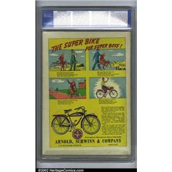Hit Comics #4 (Quality, 1940) CGC FN- 5.5 Off-white pages. Neon the Unknown stops an invasion cold in its tracks from high atop a bridge, on this classic Lou Fine cover. Looking more like a VF, this copy was apparently downgraded due to color flaking along the spine. But it does not mar the appearance in any way, which means some lucky bidder will get a beautiful book for a good price. Overstreet 2002 FN 6.0 value = $642. Important notice: We expect to be auctioning lots at the rate of 200-250 per hour. Sometimes eBay Premier live bid software cannot keep up with that pace, so we strongly recommend that you place a realistic proxy bid now as insurance to avoid disappointment. Also please note that all Heritage/CAA lots purchased through eBay Premier carry a 20% Buyer's Premium.