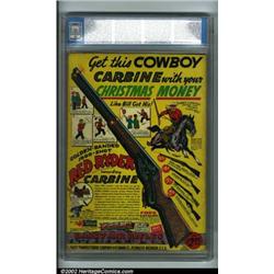 Hit Comics #9 (Quality, 1941) CGC VG/FN 5.0 Cream to off-white pages. Neon the Unknown graces yet another outstanding Lou Fine cover. This copy has a 1/4" by 1/8" piece out of the bottom of the spine, and a 3/4" crease at the lower right corner of the front cover. There is a 1/4" by 1/4" triangle off the lower left back cover and 3 small edge tears. Overstreet 2002 GD 2.0 value = $186; FN 6.0 value = $558. Important notice: We expect to be auctioning lots at the rate of 200-250 per hour. Sometimes eBay Premier live bid software cannot keep up with that pace, so we strongly recommend that you place a realistic proxy bid now as insurance to avoid disappointment. Also please note that all Heritage/CAA lots purchased through eBay Premier carry a 20% Buyer's Premium.