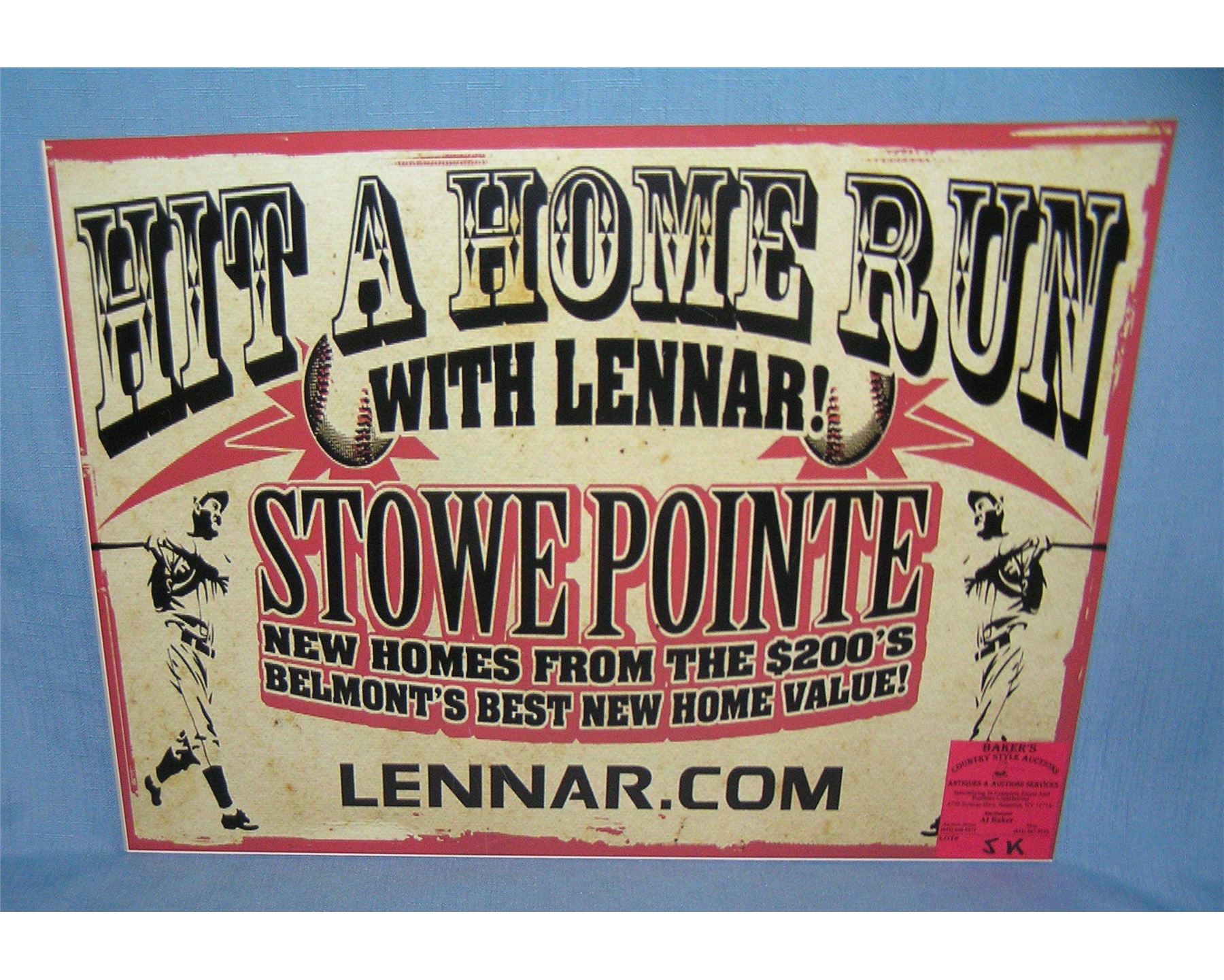 Hit a Home Run with Lennar retro style advertising sign 12 inches by 16 inches est. value $40.00-$50.00