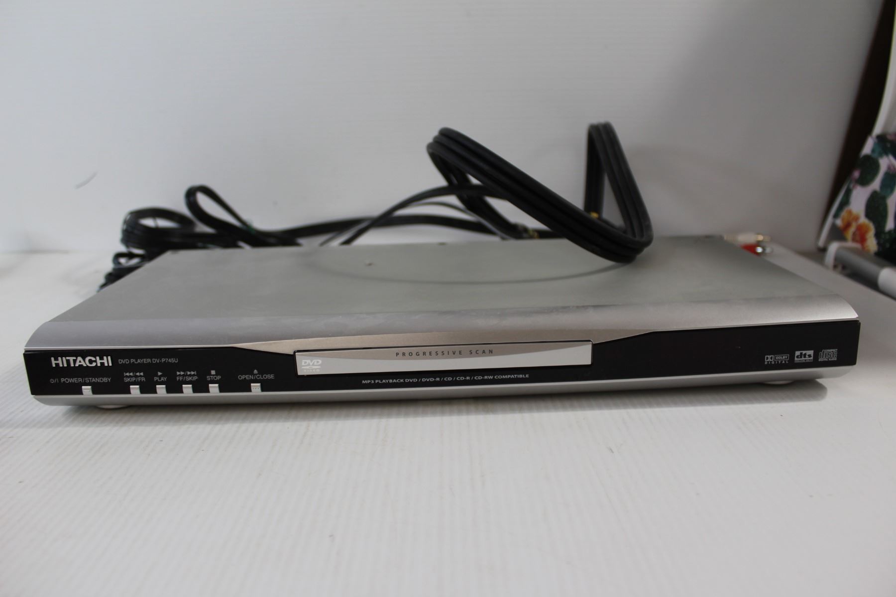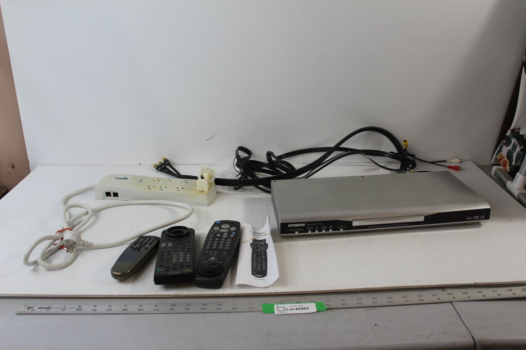 Hitachi DVD Player, (3) Remotes, Extension Cord - All Untested