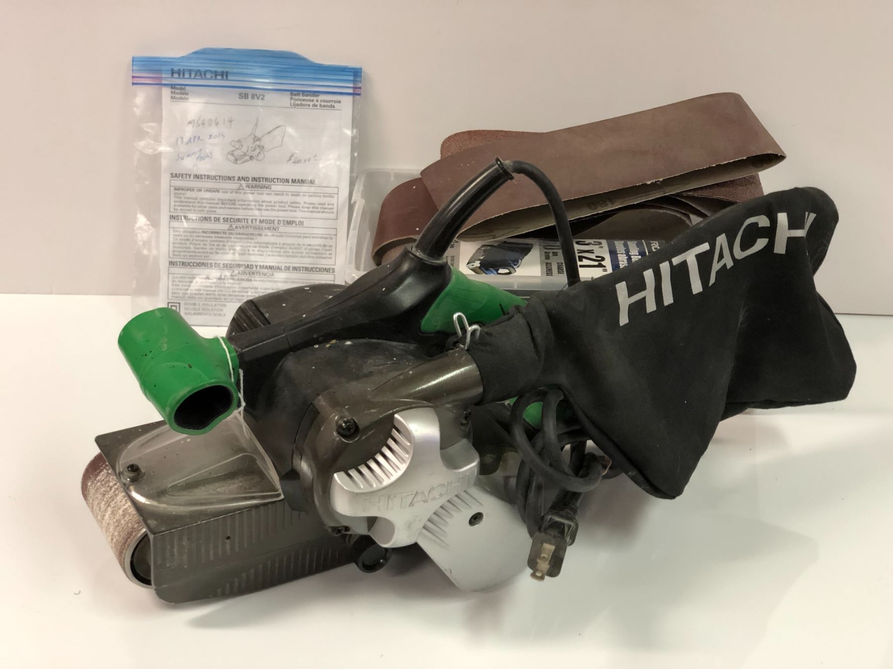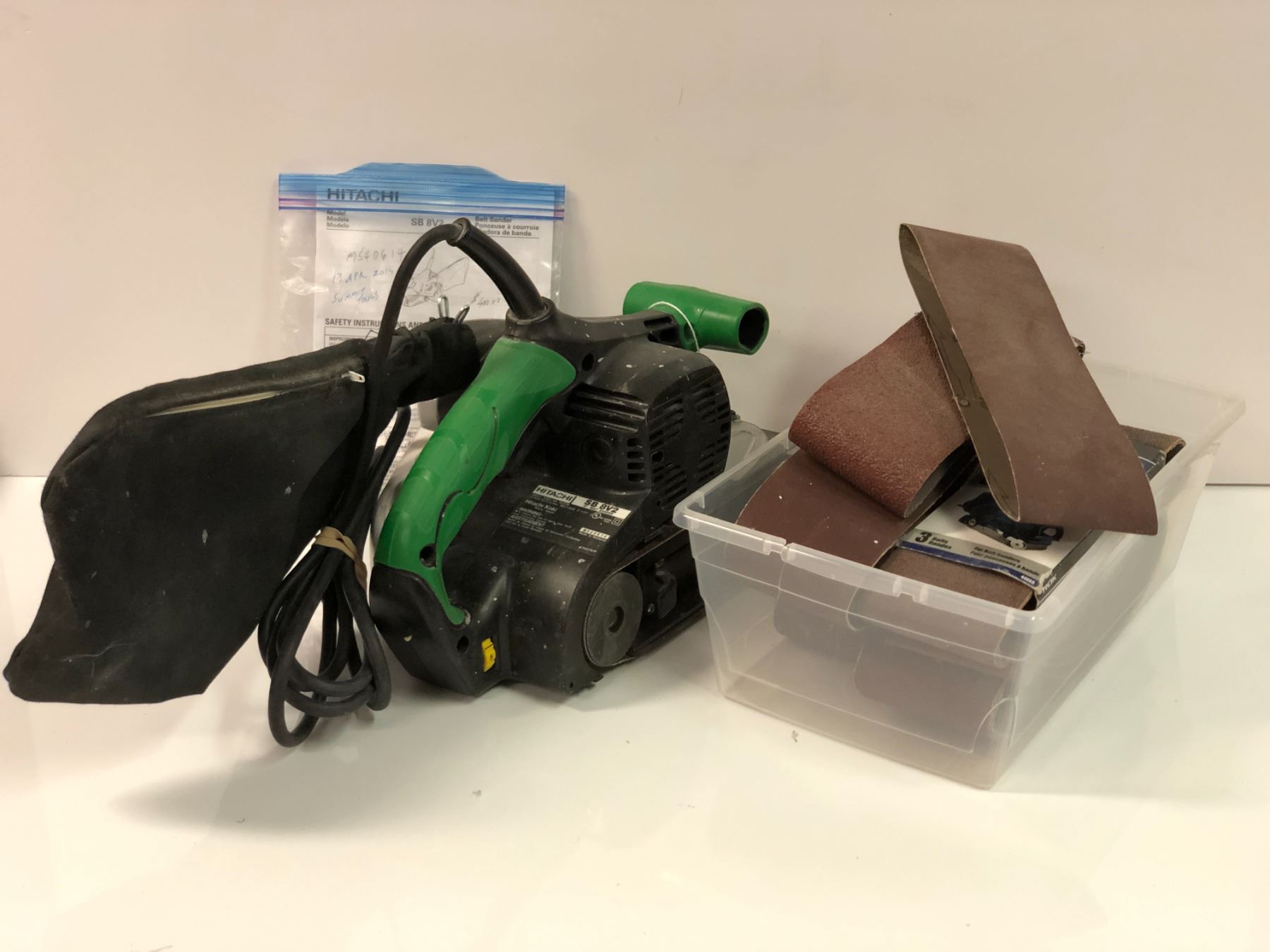 Hitachi SB 8V2 3in belt sander w/ box of replacement belts