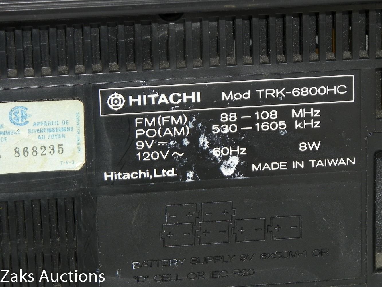 The Goods are offered for sale "as is". The description of the Goods is based on the information supplied to Zaks Auctions. However, Zaks Auctions makes no representations or warranties, expressed or implied, as to the quantity, kind, character, quality, weight, size or description of the Goods, or the condition, performance, merchant-ability or fitness for any use or purpose. It is the Purchaser's responsibility to make all necessary inquiries regarding the Goods. The Purchaser is deemed to have relied entirely on the Purchaser's own inspection and evaluation. It is up to the Purchaser to ask any and all questions surrounding the Good(s) prior to placing a bid, and having a bid resulting in a Purchase, Sale of Good(s).