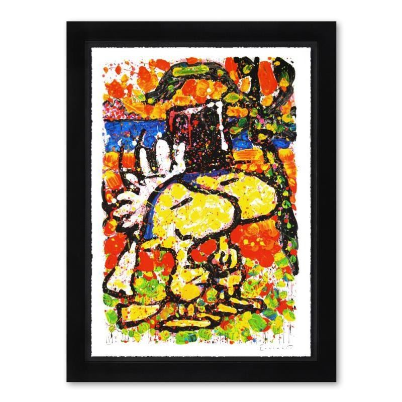 "Hitched" is a limited edition hand pulled original lithograph on museum quality deckle-edge paper by Tom Everhart. The piece is numbered and hand signed by the artist. This is one of the final Everhart editions to be created on a rare antique Marinoni Voirin lithograph press that dates back to the 1800s. The piece comes framed and includes a letter of authenticity. Measures approximately 35" x 48" (framed) 31" x 44" (image and border).