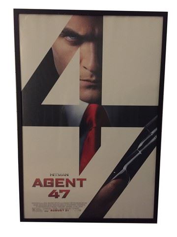 Framed movie poster for Hitman Agent 47. Plexi glass frame. This was hung in the production offices for several years. Upon request, poster can be removed from frame to reduce shipping charges. (41"x28")