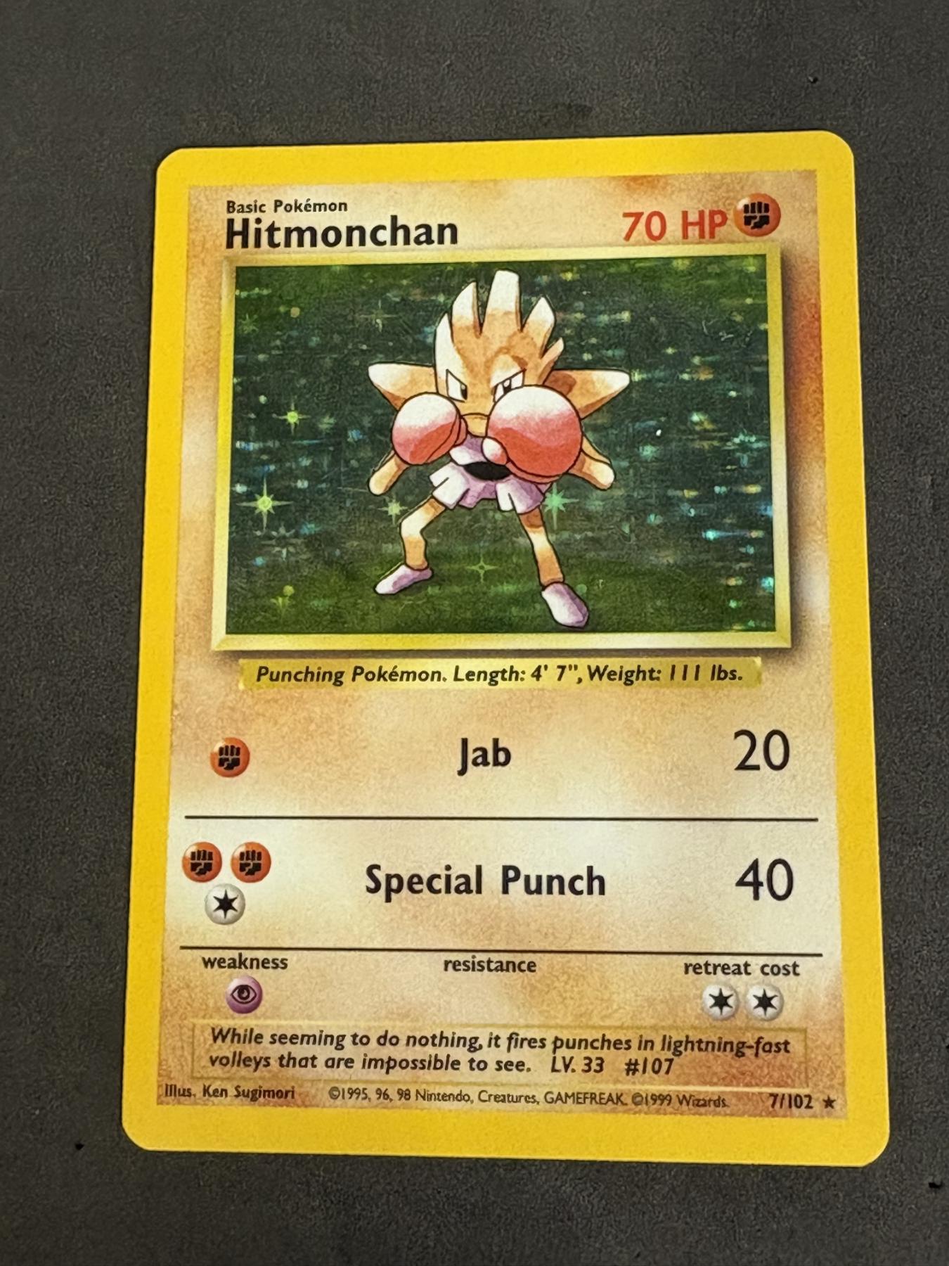 Hitmonchan 7/102 Rare Holo Pokémon Trading Card - Vintage 1995