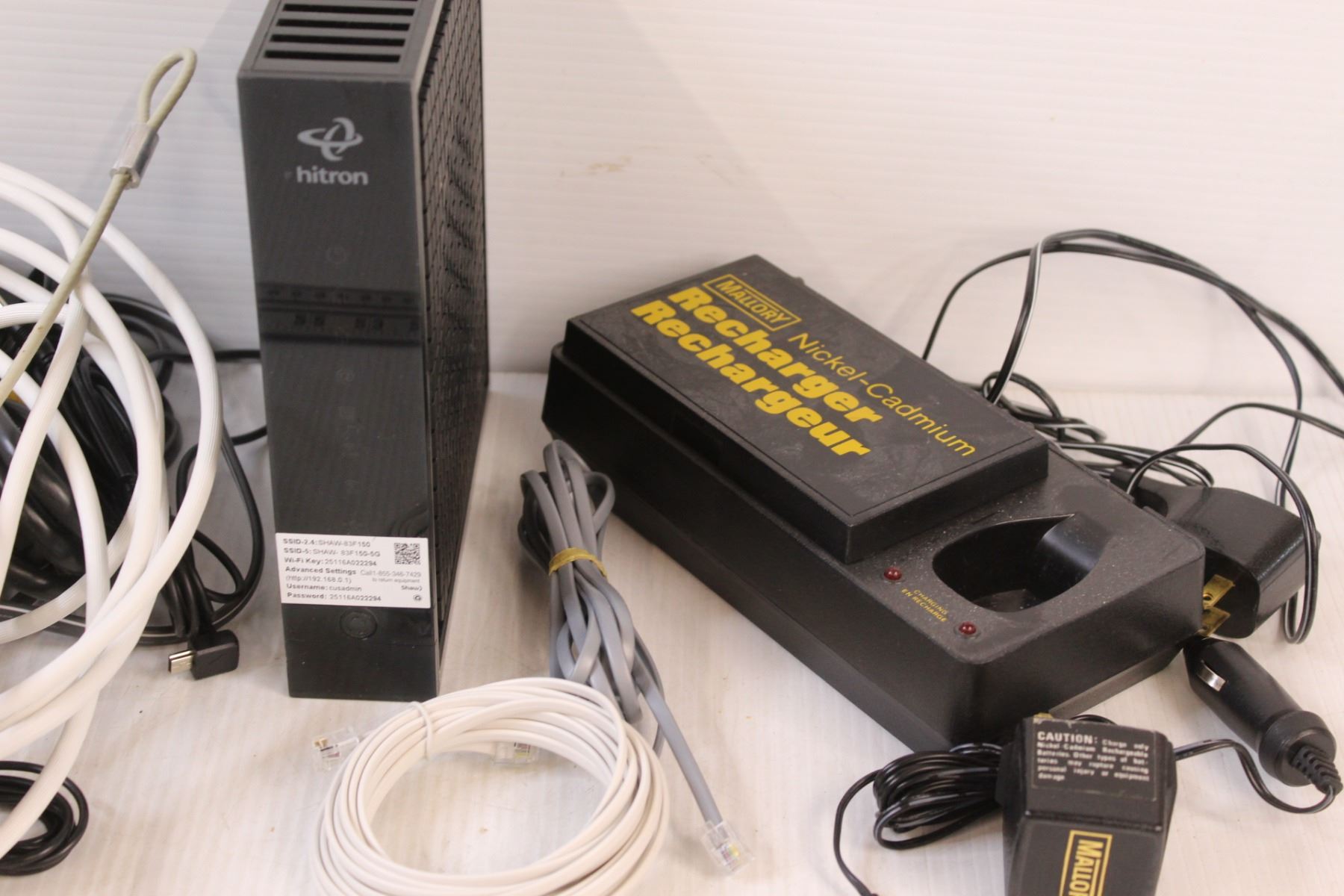 Hitron Wi-Fi, Assorted Electronic Cords & Power Bars, Battery Charger