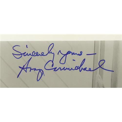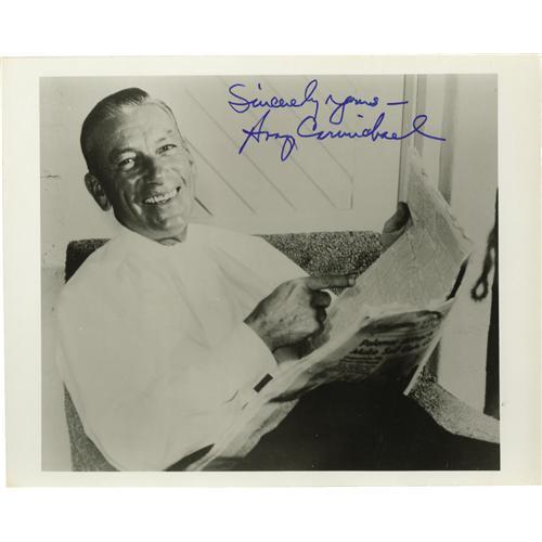 <B>Hoagy Carmichael Signed Photo.</B></I> A b&w 8" x 10" promo photo inscribed and signed by Carmichael in blue felt tip. In Excellent condition with very minor tanning and wear. <I>Accompanied by LOA from PSA/DNA.</B></I><BR><BR><b>Shipping:</b> Flat Material, Small (<a target="_blank" href="http://www.heritageauctions.com/common/shipping.php">view shipping information</a>) <BR><BR><B>Important notice:</