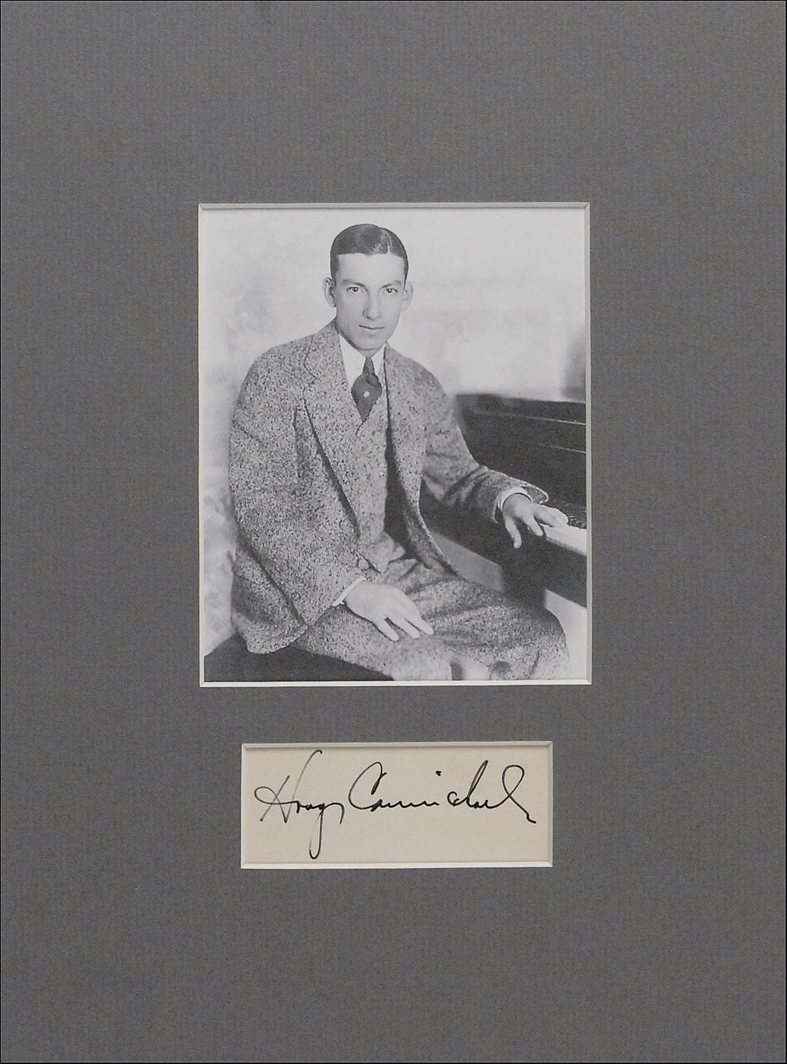 Black felt tip signature, “Hoagy Carmichael,” on an off-white 3.5 x 1.25 card. Matted with a small photo to an overall size of 9 x 12. In fine condition.