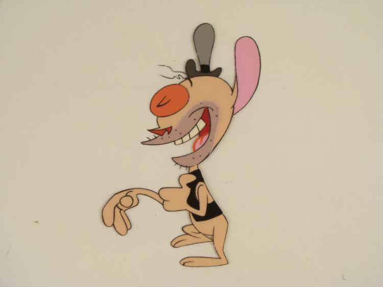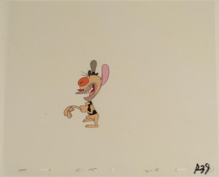 This is an original production animation cel from the Nickelodeon TV show Ren & Stimpy. The show follows two characters - Ren, a crazy Chihuahua - and - Stimpy, an incredibly stupid cat - as they think up to all kinds of hair brained schemes and get themselves into some sticky situations. The Ren and Stimpy Show debuted in August 1991 with a two-part episode, 'Stimpy's Big Day / The Big Shot' and became an instant hit. It was the third Nicktoon ever to be aired on the Network alongside Doug and Rugrats . * Ren is walking away * Original Production Art Cel Overall Size of the Cel: 10 1/2" x 1/2" Very Good condition This is an original hand-painted cel set-up used in the production of an episode of "The Ren & Stimpy Show." Each one-of-a-kind set-up represents a slight change in position of the characters. When individually photographed and projected in rapid succession, the images appear to move. * To create production cels, the original animator's drawing is transferred onto an acetate cel (by hand-inking and/or photo copying). The cel is then hand-painted on the reverse side. * The cel is ready to be matted and framed. The animator's notations are shown at the bottom of the cel. *