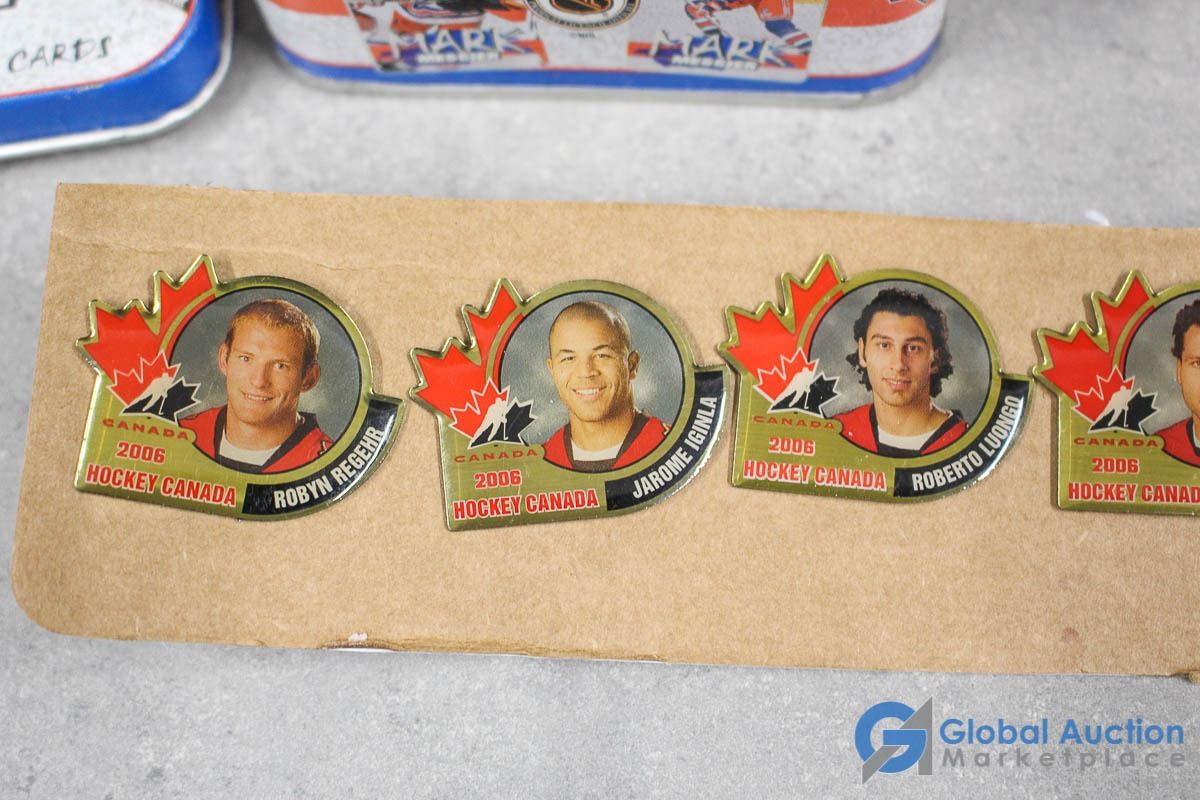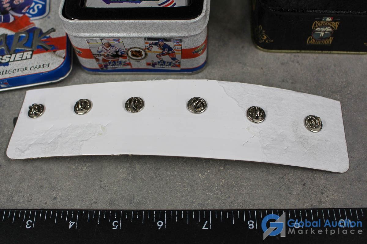 Hockey & Baseball Tins w/Metal Cards & Pin Collection