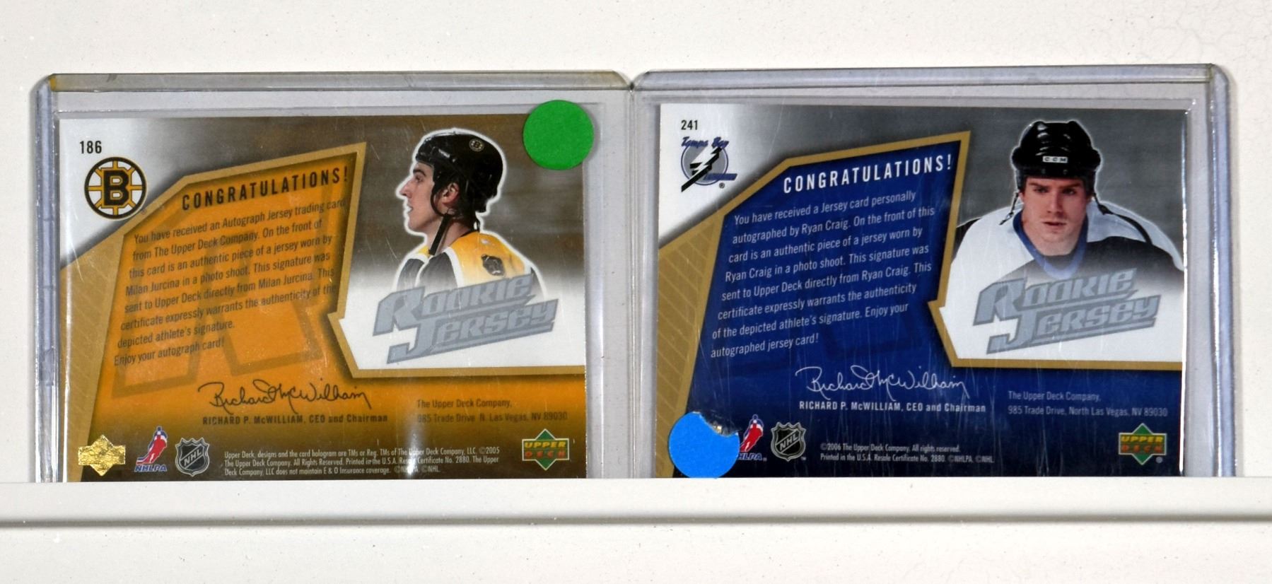 05-06 Upper Deck Ryan Craig Rookie Jersey Signed Card 1584/1999; 04-05 Jurcin Signed Upper Deck Rookie Jersey Signed Card 0569/1499