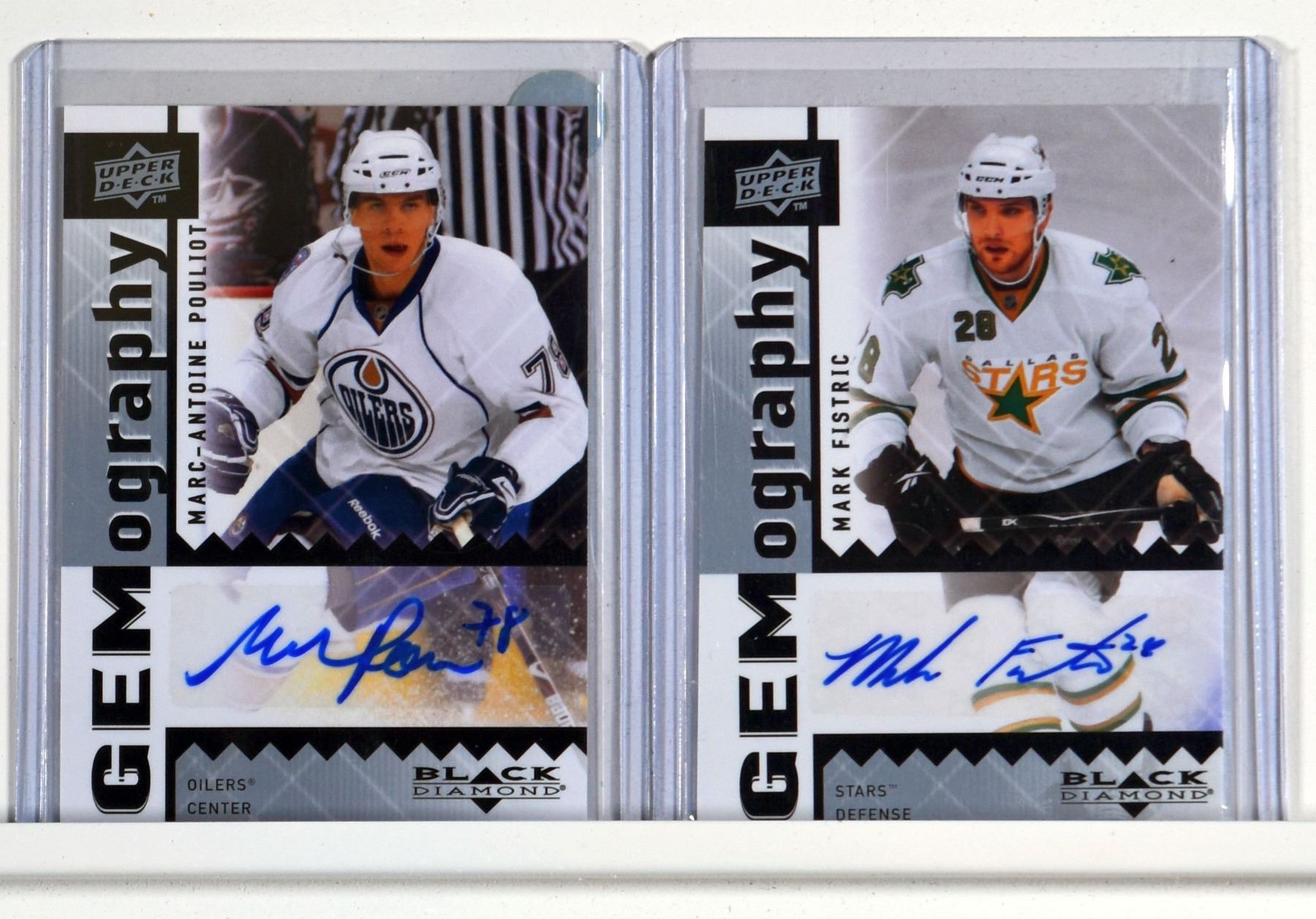 Lot of 2 Upper Deck GEMography Autographed Cards including Marc-Antoine Pouliot, Mark Fistric