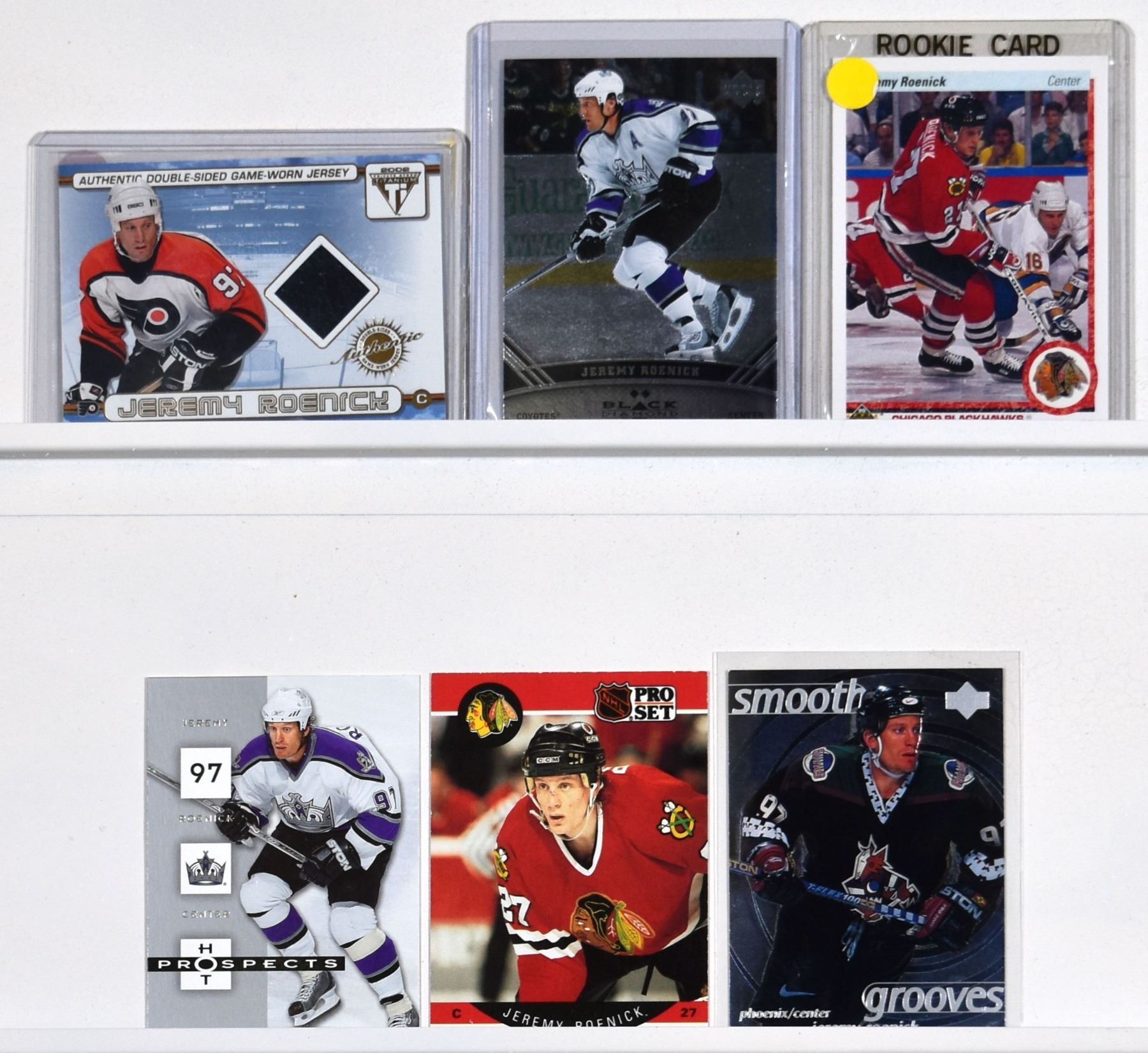 6 Card Lot of Jeremy Roenick including Hot Prospects, Rookie, Black Diamond, Smooth Grooves, Authentic Double Sided Game Worn Jersey