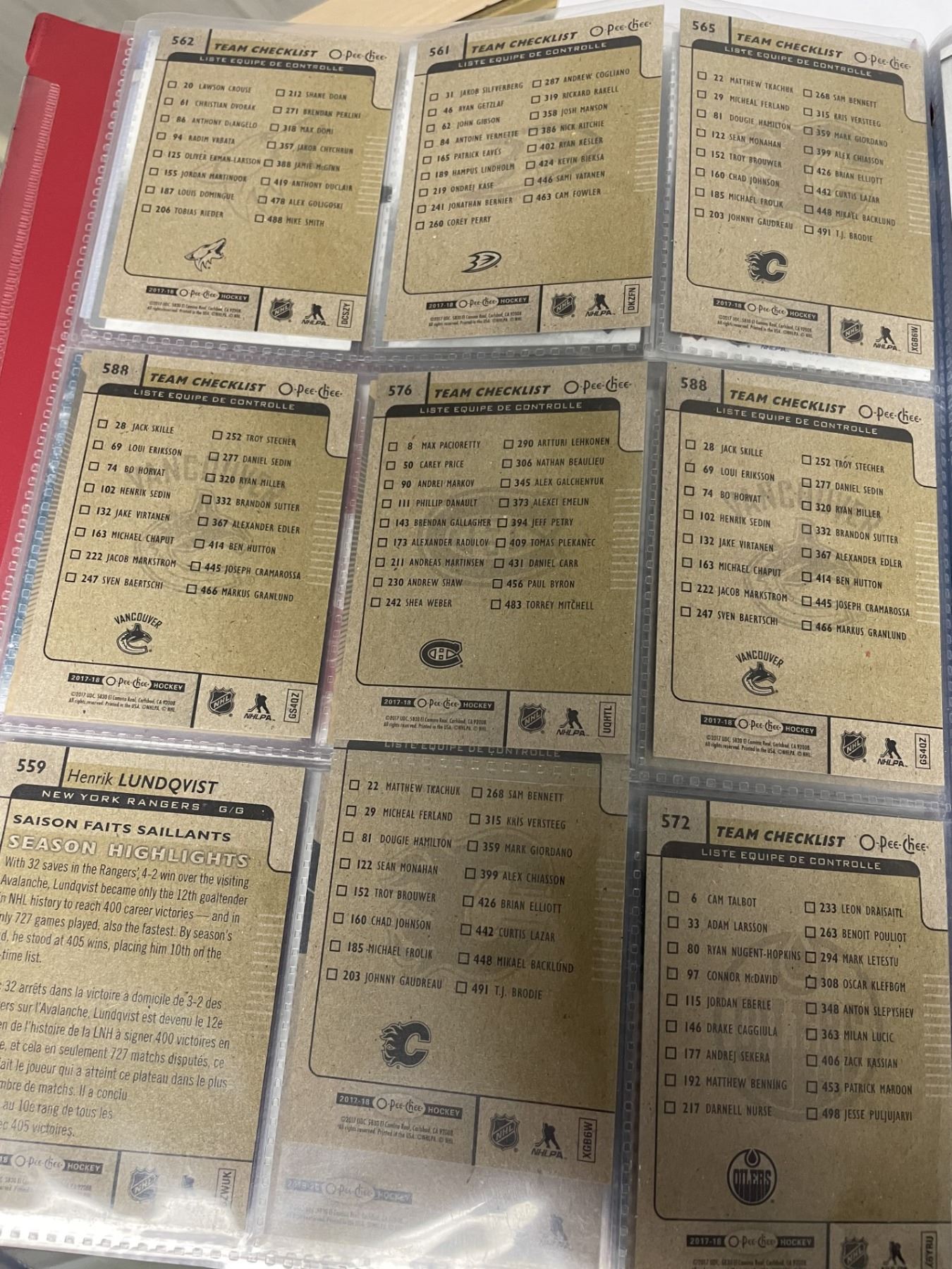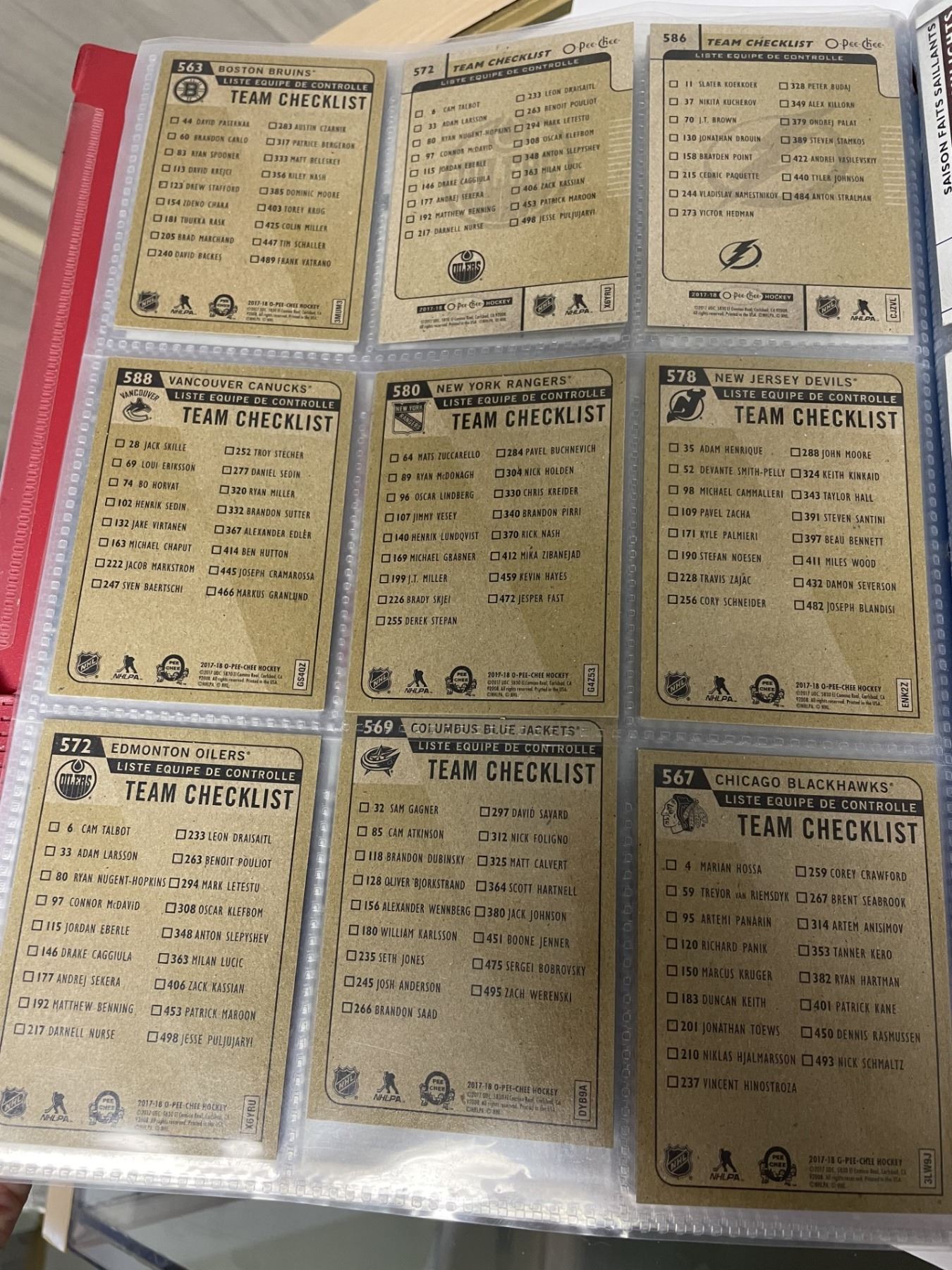 Hockey Team Check List Cards, 9 Sheets , 81 Cards