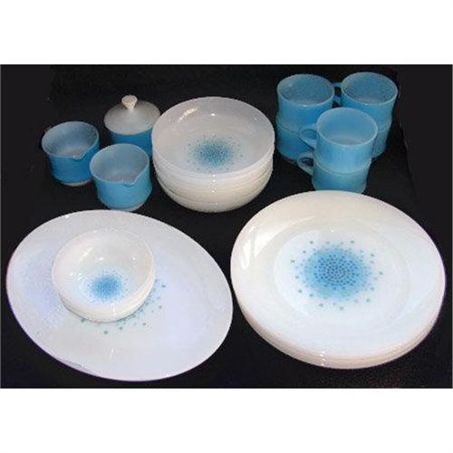 <tr><td>Title:Hocking Fire King 23 Pc Blue Mosiac Dinner Set</td></tr>