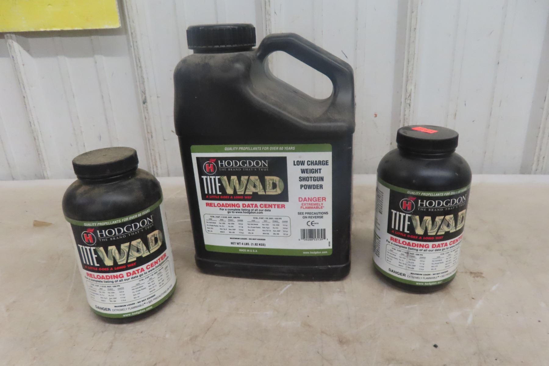 Hodgdon Tite Wad Low Charge Shotgun Powder — Approx. 3–4 Lb; No Shipping. **** Must Have Pal, MUST PRESENT PAL WHEN PAYING INVOICE. WE DO NOT AND WILL NOT SHIP AMMO. IF YOU WIN AMMO YOU WILL BE RESPONSIBLE TO PAY FOR IT AND RESELL IT UNDER YOUR OWN CONSIGNMENT ****