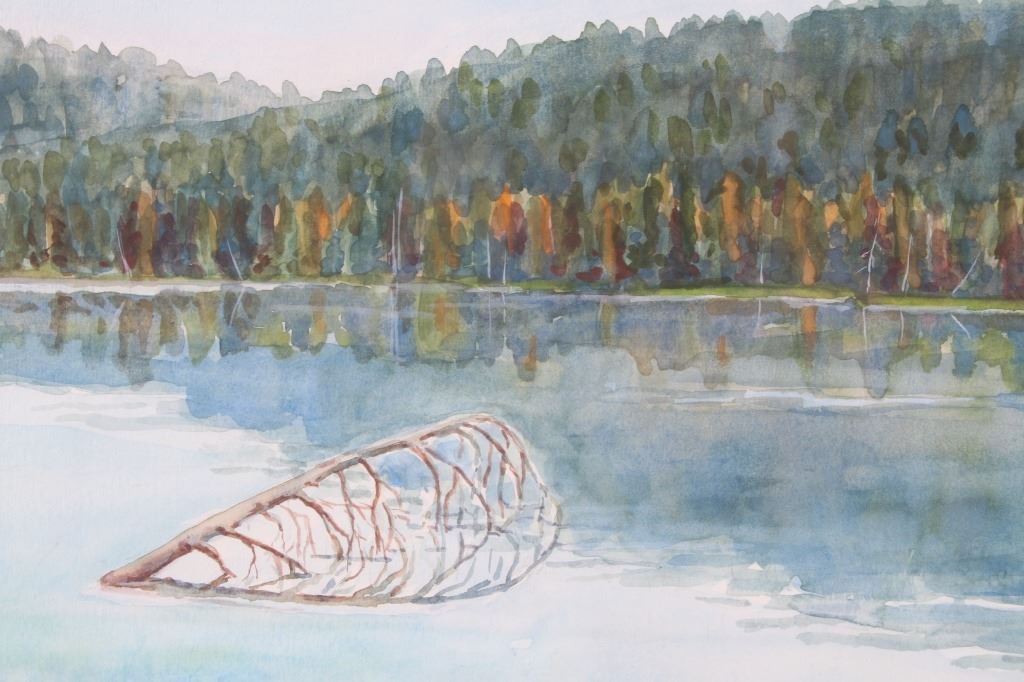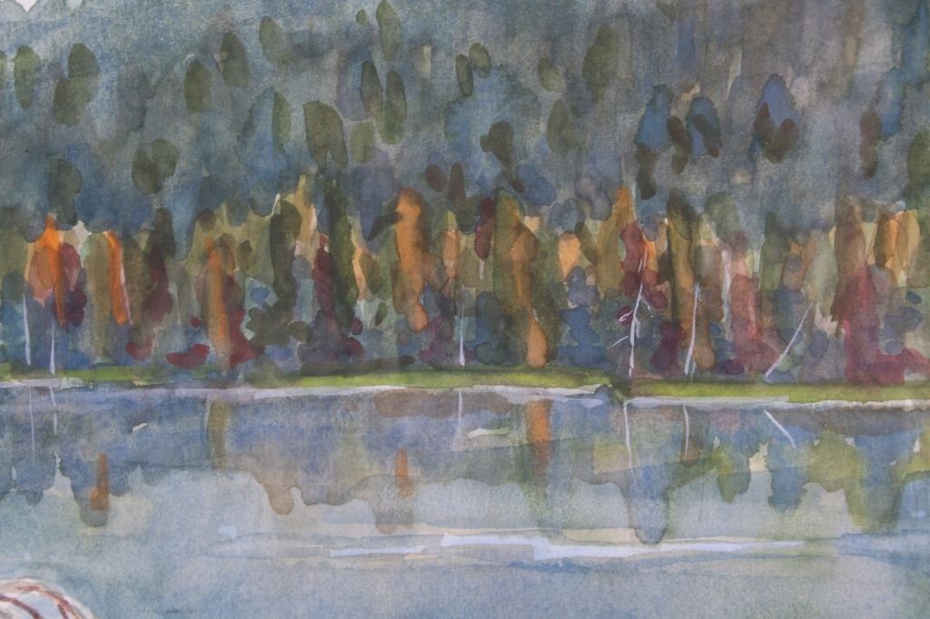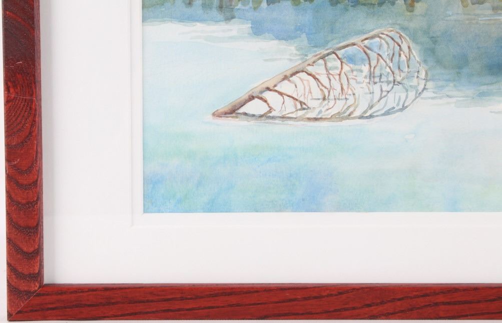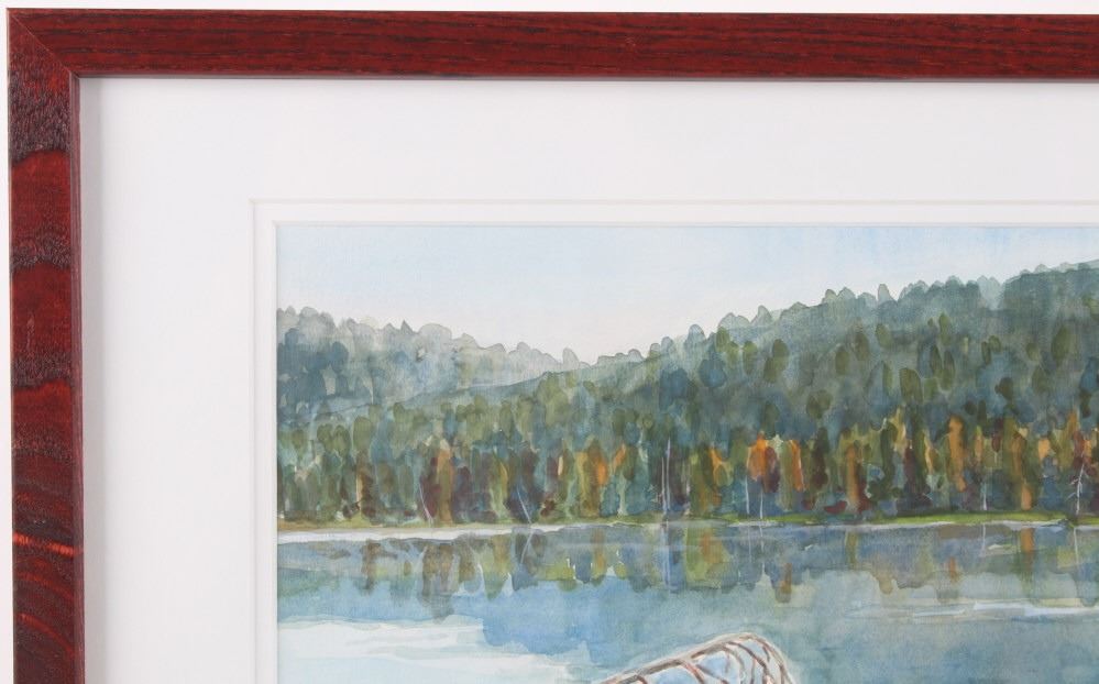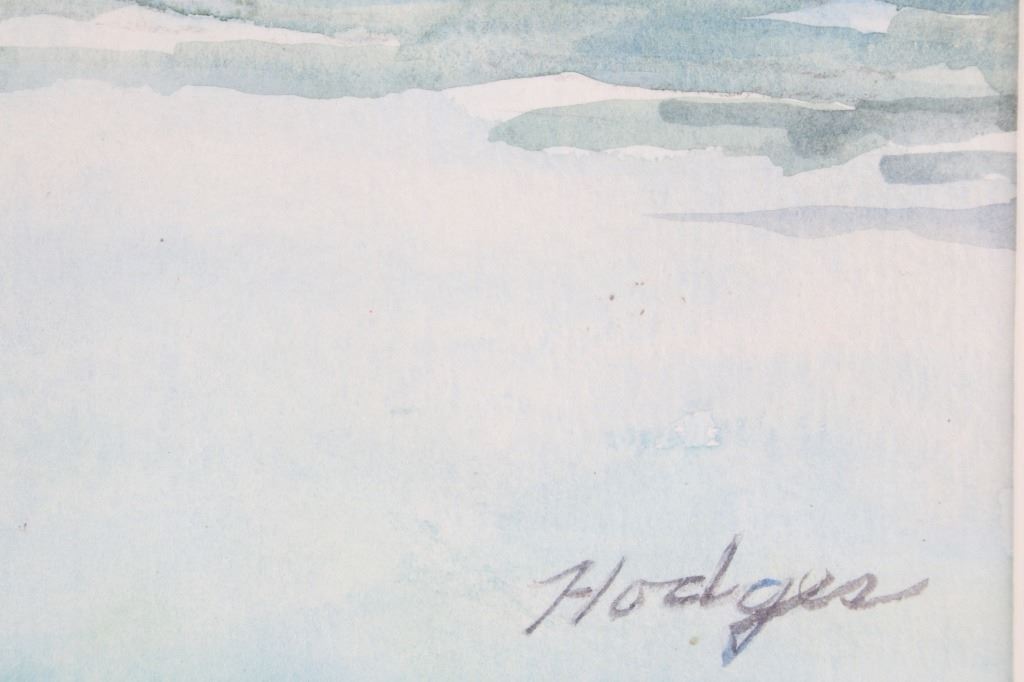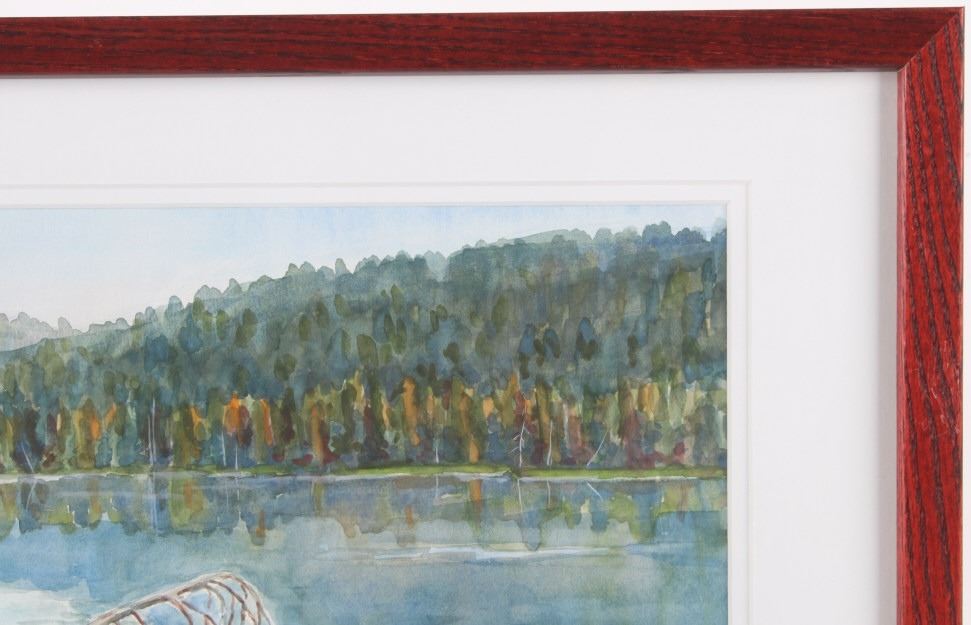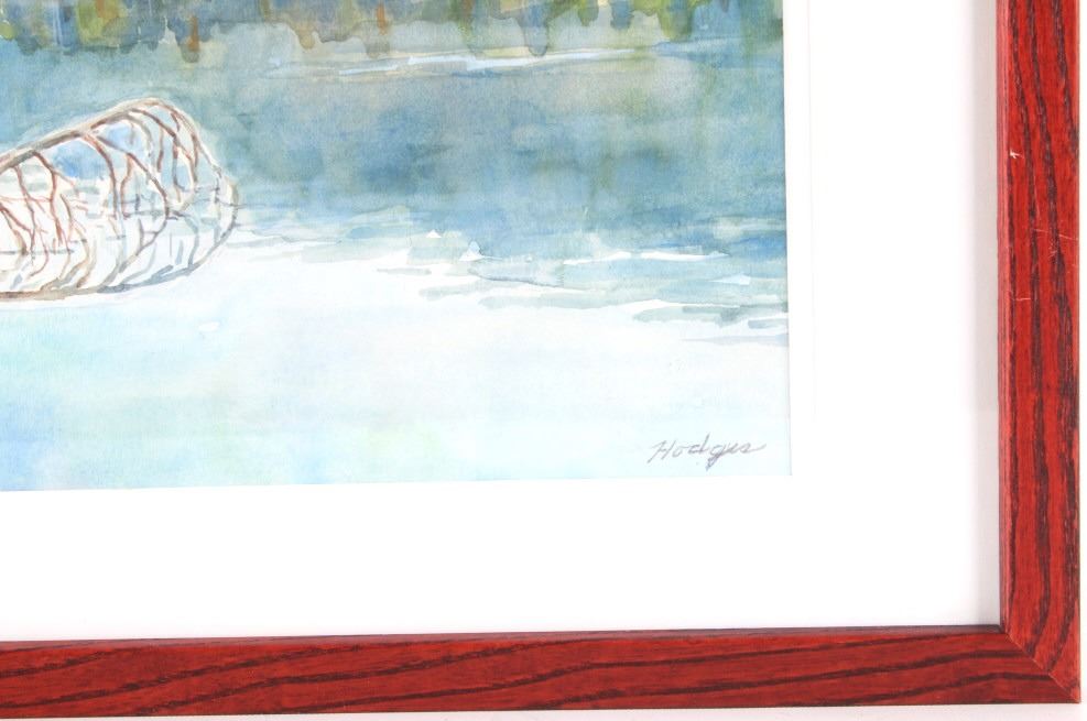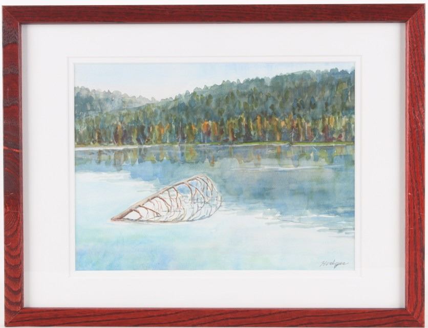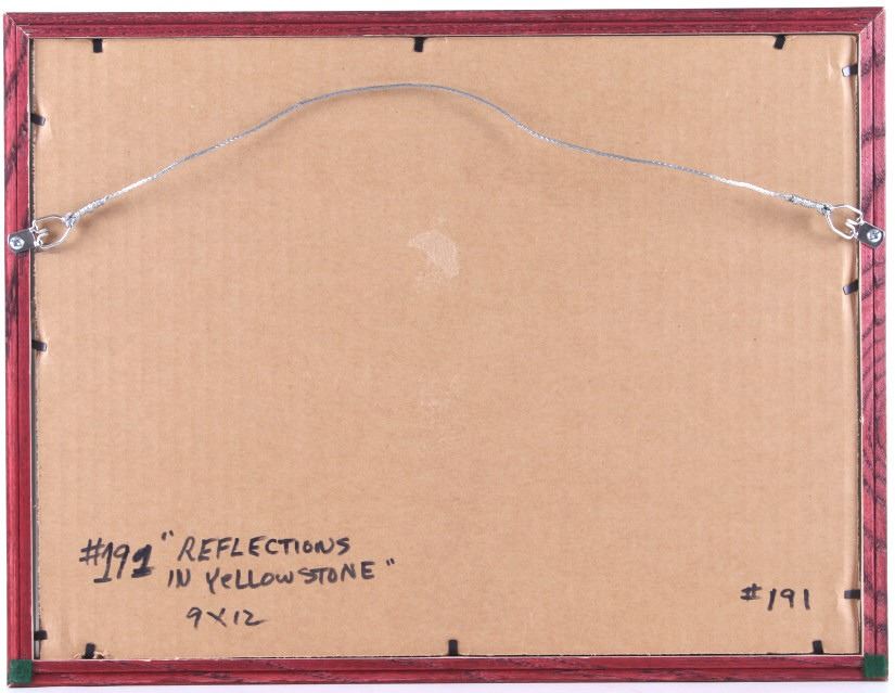 Featured in this lot is this framed watercolor called "Reflections in Yellowstone,' by Hodges, Dave (1949 - ). Dave Hodges, a Big Timber Montana artist, graduated from MSU in 1979. In 1982, he began his professional career as a bronze sculptor and continues successfully in that field to this time. The watercolor features a scene of a body of water with the reflections of the forest and the sky. The condition of this of this watercolor is good with no obvious signs of damage and in good overall display condition. The measurements of this framed watercolor are 13 1/8" x 17 1/8" and the visible art measures 8 1/2" x 11 1/2".