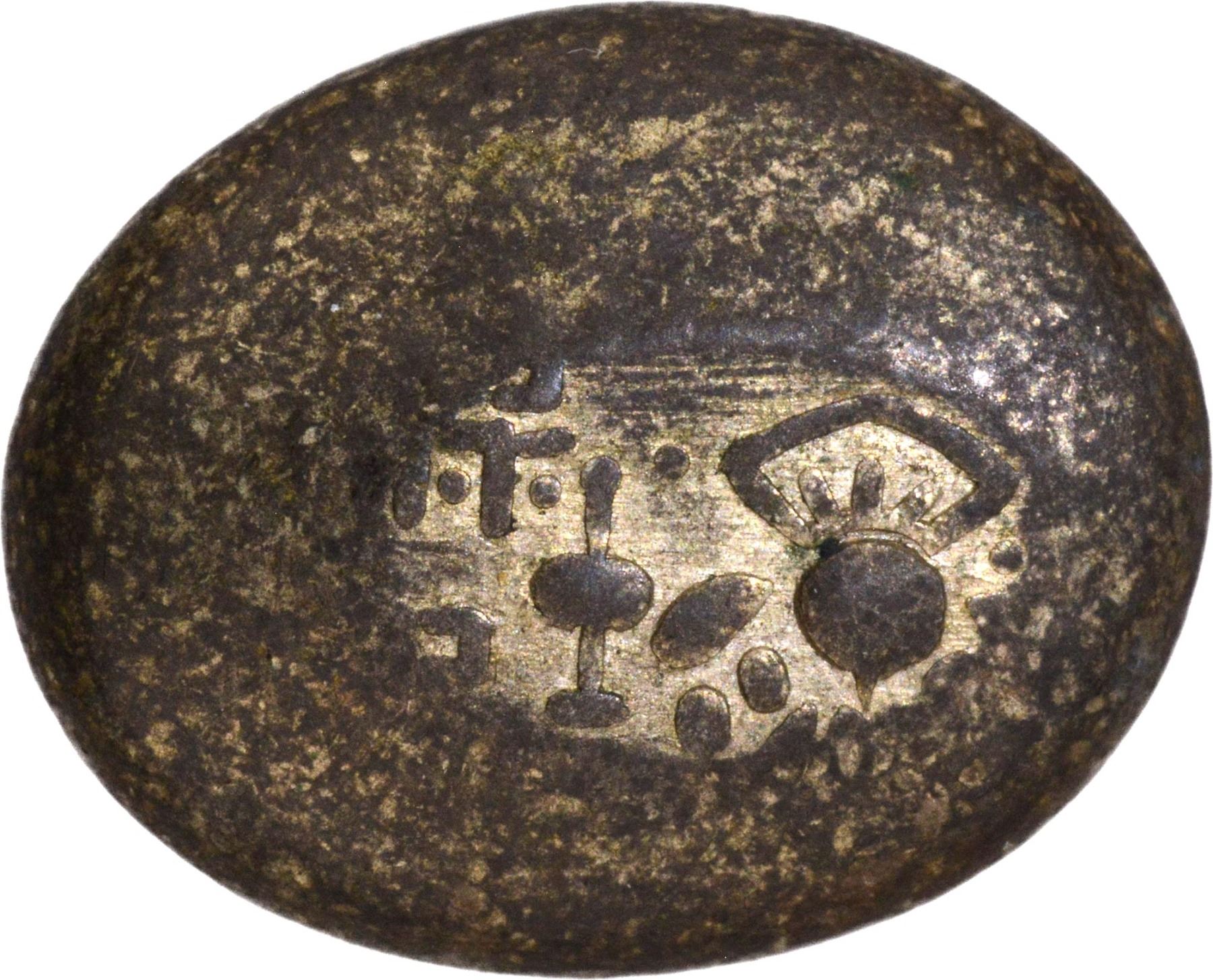 Japan, Hoei Silver Mameita Gin (Bean Money) (16-18 Century AD), Obv: God of Plenty, Rev: traces of designed character, 13.03g, 20.29mm, about extremely fine, Rare.