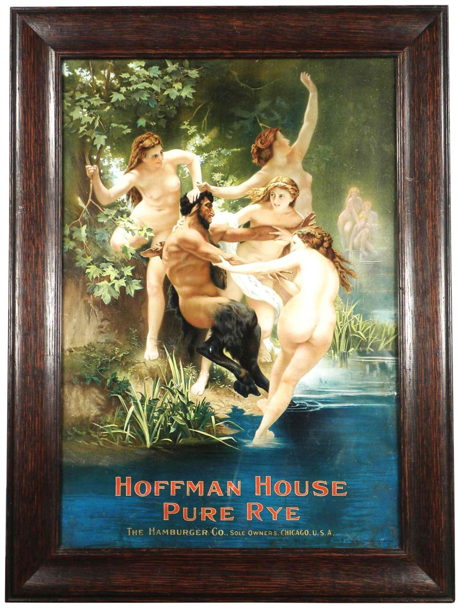 Hoffman House Pure Rye Tin Sign. The Hamburger Co. Chicago. Stunning Graphics. A few dents and some wrinkles otherwise good condition. 13 1/2 X 19 1/2 inches.
