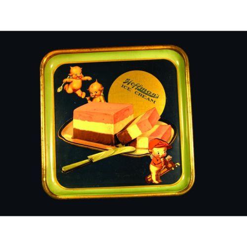Hoffmans Ice Cream Tin Serving Tray, some minor paint loss on the rim otherwise excellent condition, 13 inches square.