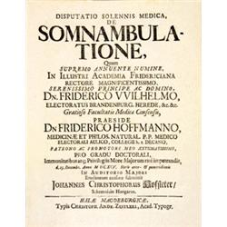 [Halle] Halae Magdeburgicae, (1695). Zeitler. 24 p. Dissertation of Johann Christoph Hofsteter from Selmecbánya in 1695 at the university of Halle, defended under the chairmanship of Friedrich Hoffmann, on the topic of sleepwalking. Stitched.