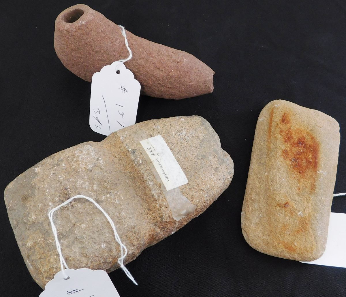 Hohokam Artifact Collection over 2000 years old and made from hard stone. The Pipe is 5 x 3 inches, axe is 7 x 4 inches and paint pallet is 6x3 inches. These items are from Southern Arizona. See images as there are minor nicks and scratches. Shipping: $35.00
