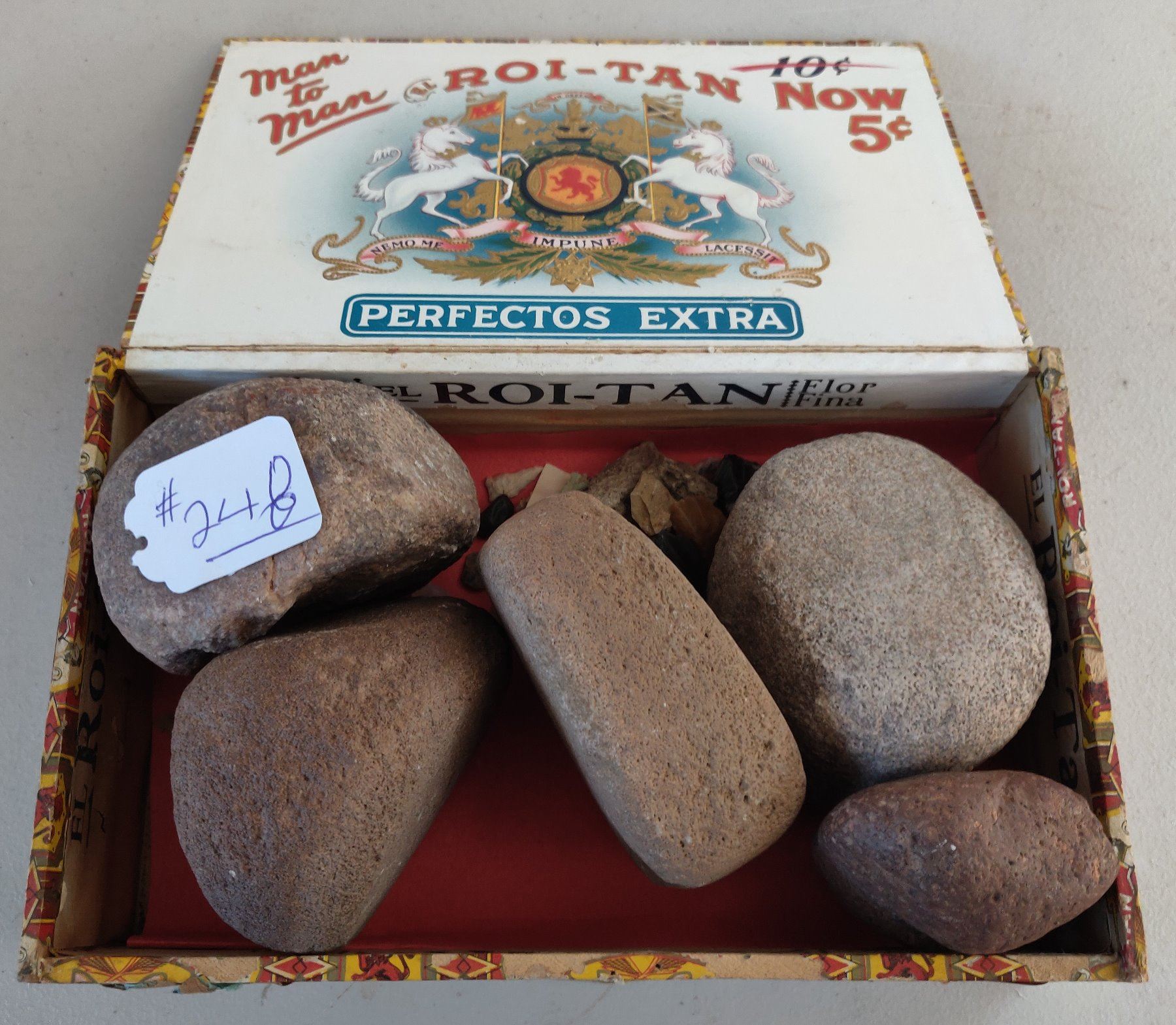 Hohokam Artifact Collection, pre-historic items. Made of granite, the largest measures 3 1/2" x 3 1/2". Ajo, Pima County, Arizona. Includes arrowshaft straightener. Condition: As found, see images. Shipping: $28.00 w/insurance and signature, due to weight.