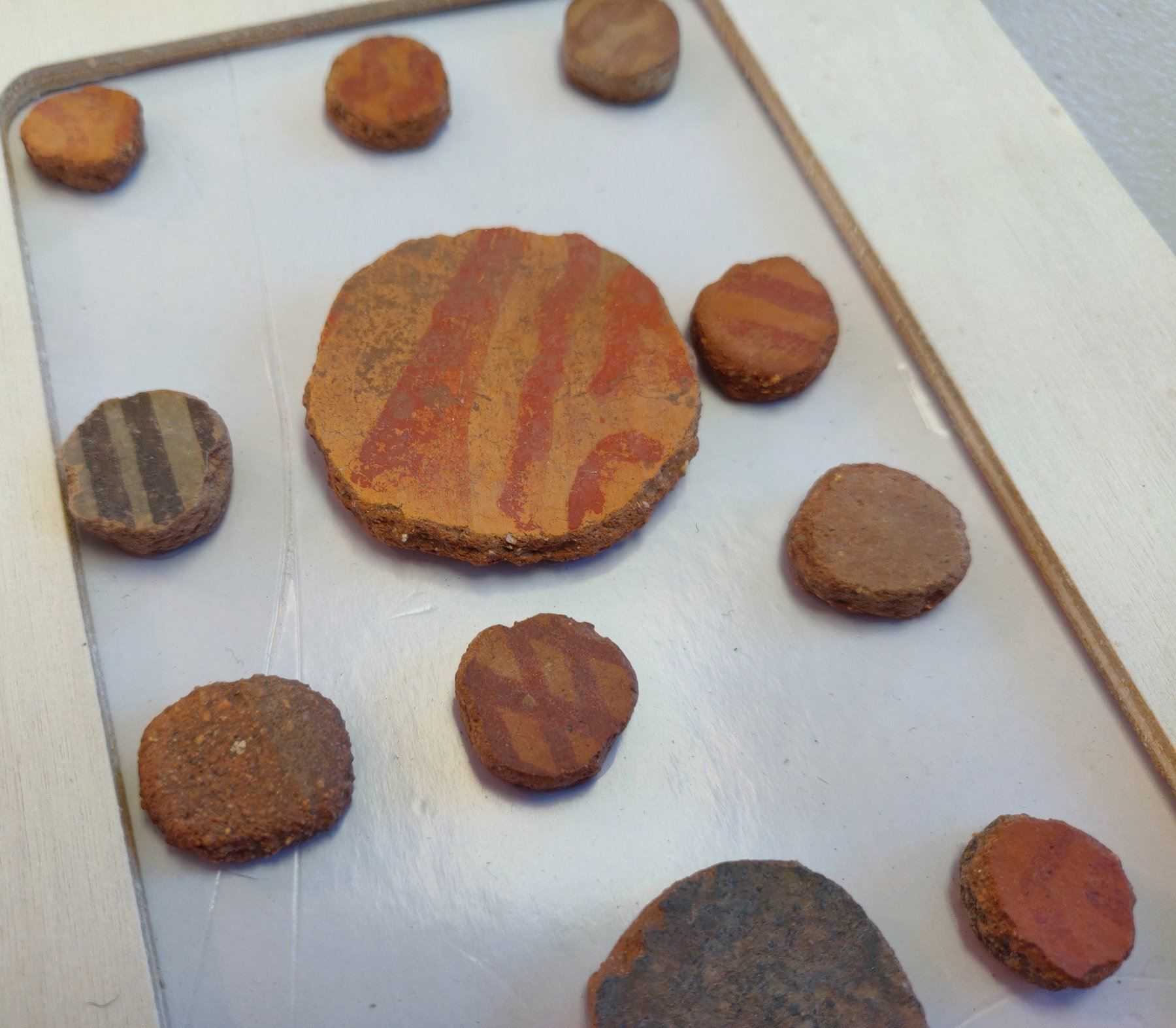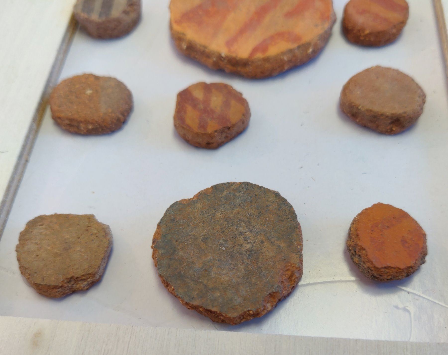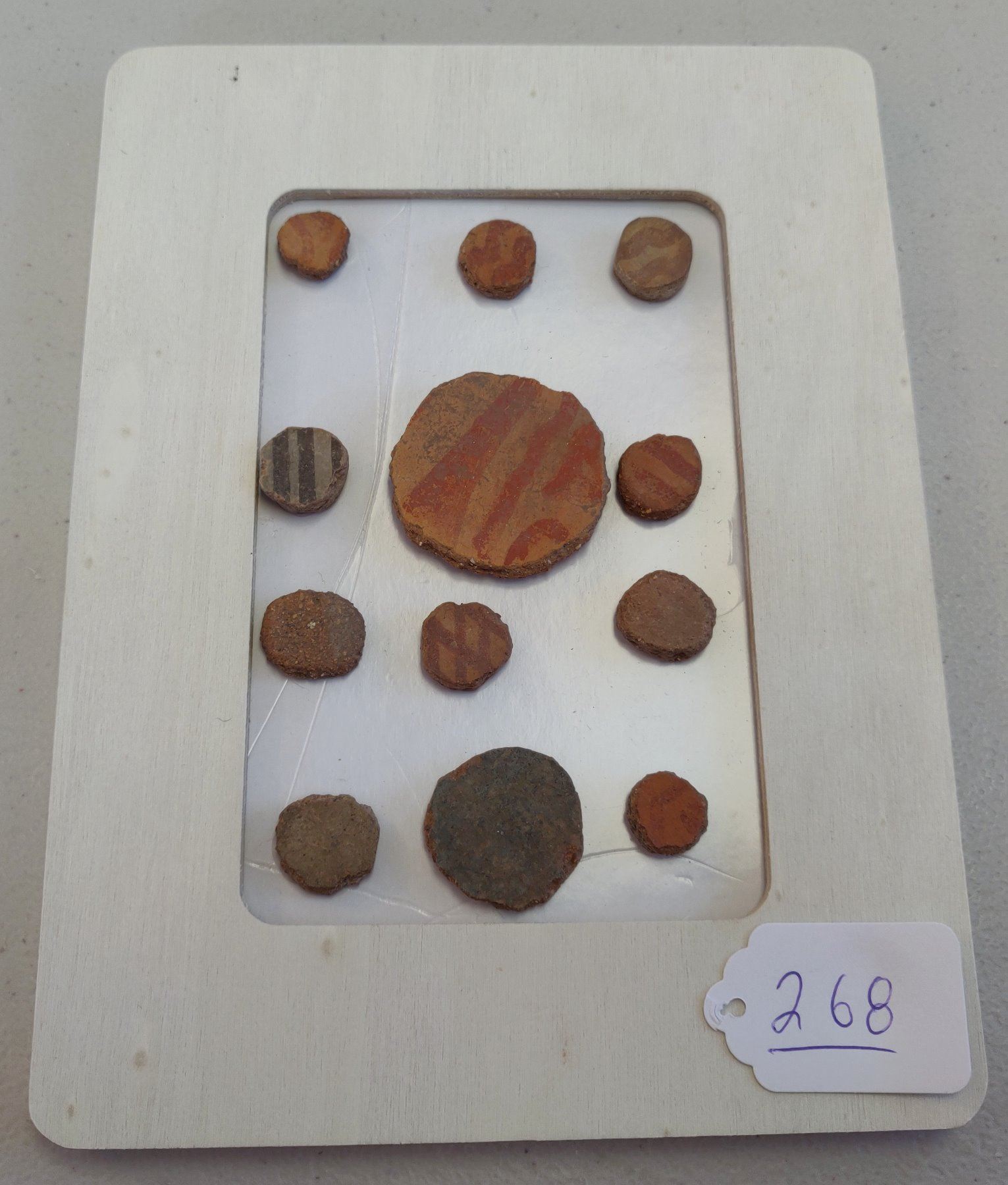 Hohokam Dice Collection, pre-historic items. Made of clay, the largest measures 1 5/8". Ajo, Pima County, Arizona. Condition: As found, see images. Shipping: $16.50 w/insurance and signature, due to value.