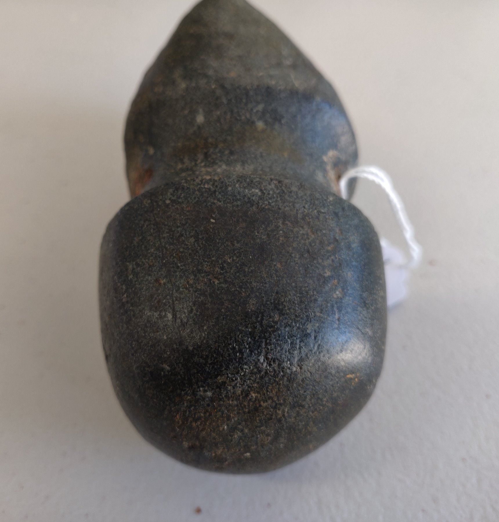 Hohokam Grooved Axe, pre-historic item. Made of basalt, the item measures 5 1/2" long. Ajo, Pima County, Arizona. Polish from use. Condition: As found, see images. Shipping: $22.50 w/insurance and signature, due to value.