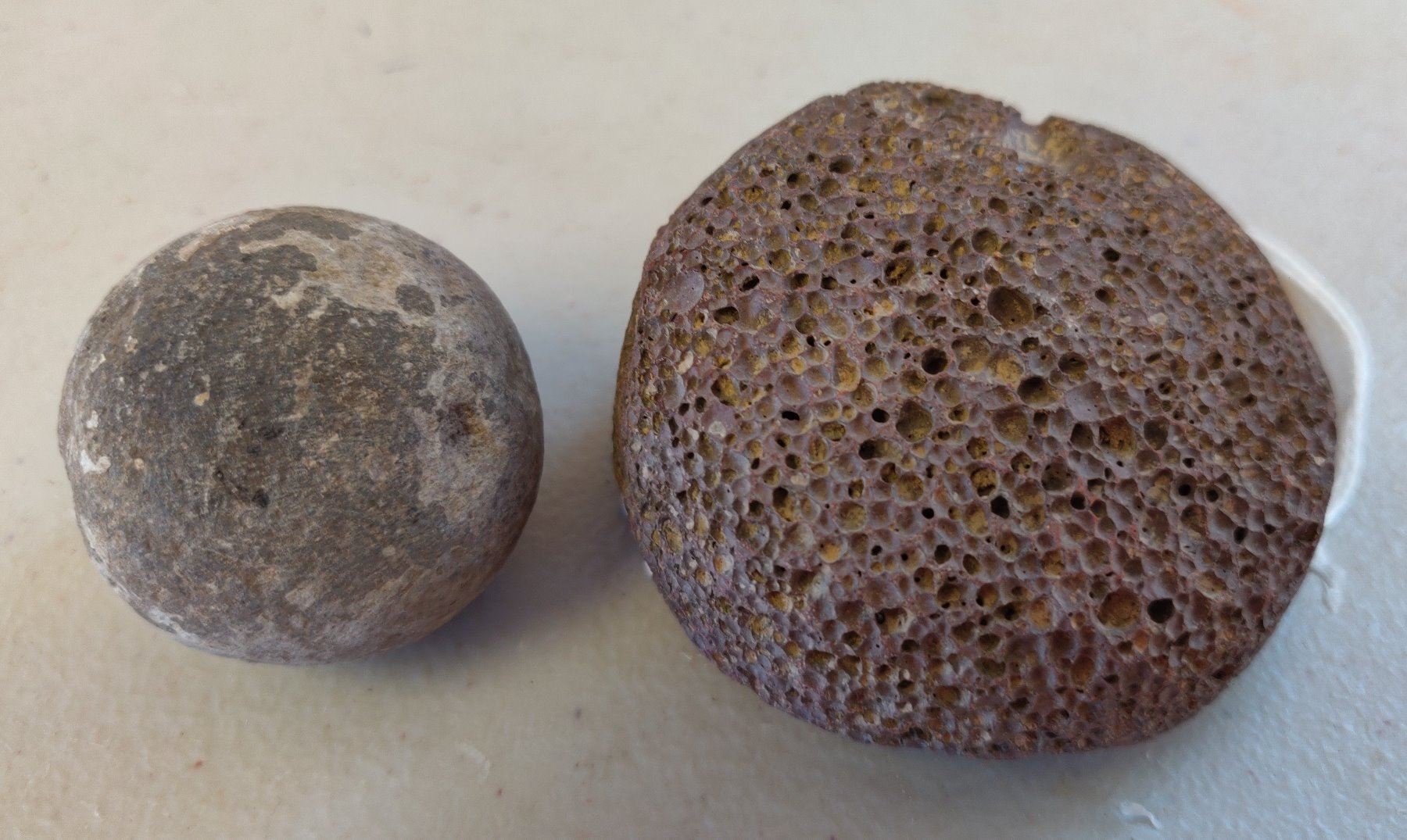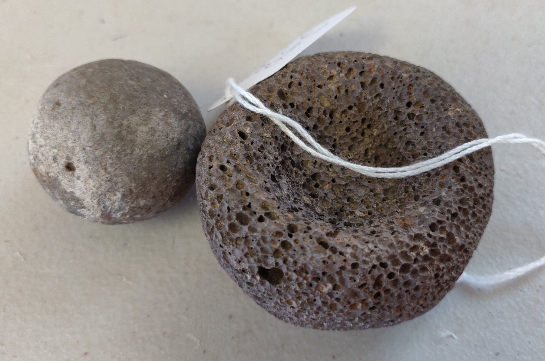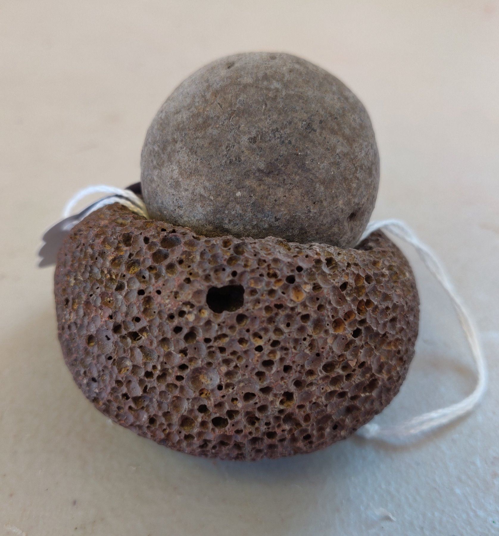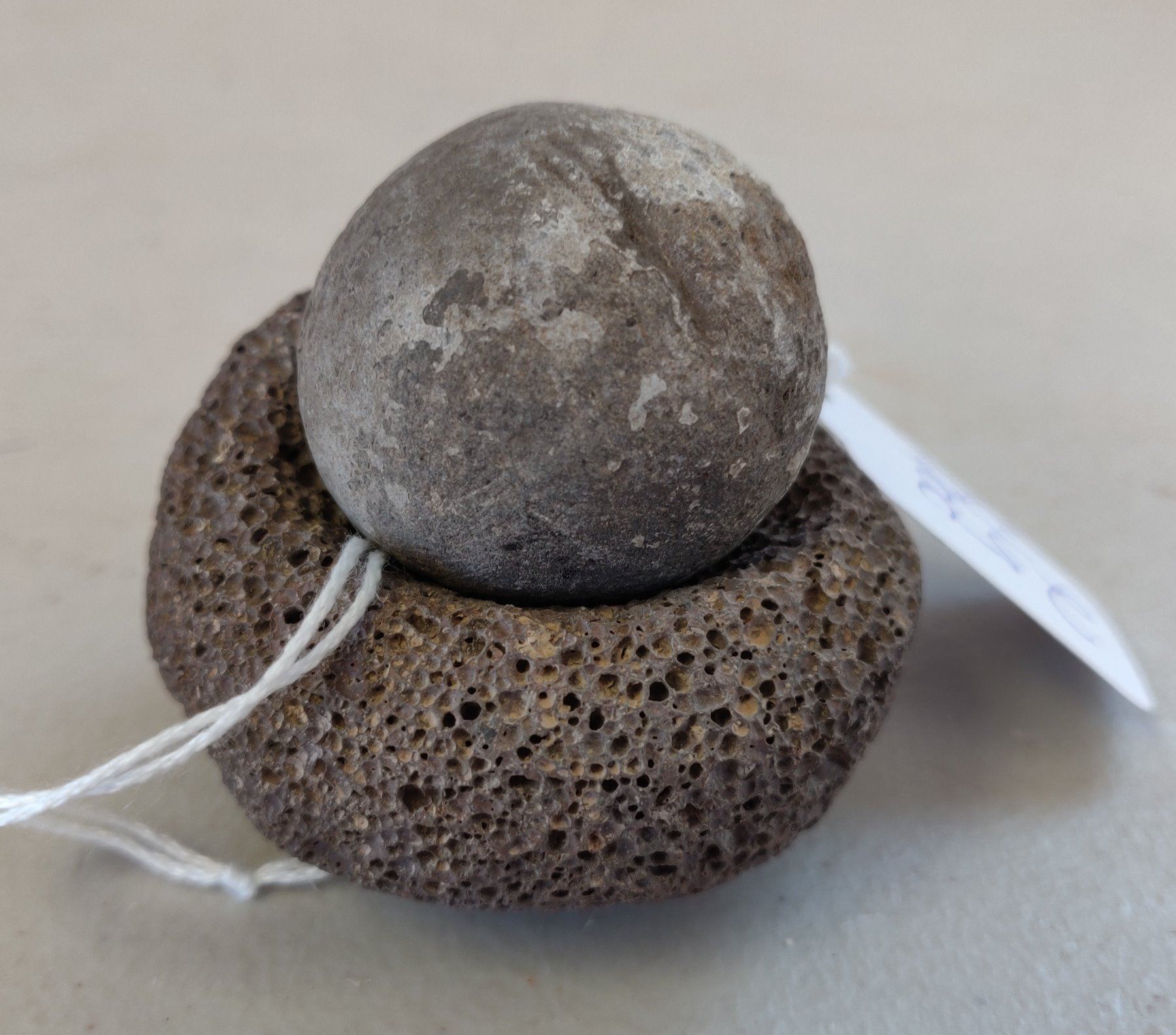 Hohokam Paint Mortar, pre-historic item. Made of basalt stone, the item measures approx. 2 1/2" x 2 1/2" x 2 1/2". Hohokam, Ajo, Pima County, Arizona. Nice vesicular basalt mortar. Condition: Good, as found, see images. Shipping: $15.50 w/insurance and signature, due to value.