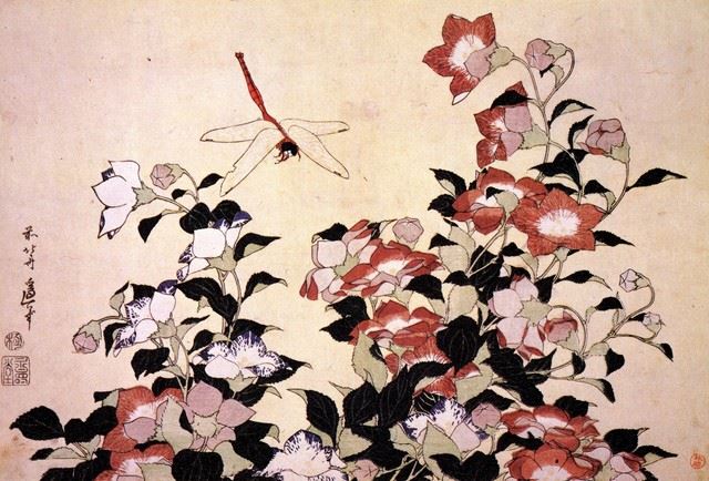 Artist: Katsushika Hokusai - Title: Chinese Bell Flower and Dragon-Fly - Medium: Fine Art Giclee on Canvas - Image Size: Approximately 21.75 inches x 32 inches - Unframed on Unstretched Canvas - Biography: ( c. 31 October 1760 - 10 May 1849), known simply as Hokusai, was a Japanese artist, ukiyo-e painter and printmaker of the Edo period. Born in Edo (now Tokyo), Hokusai is best known as author of the woodblock printseries Thirty-six Views of Mount Fuji which includes the internationally iconic print, The Great Wave off Kanagawa.