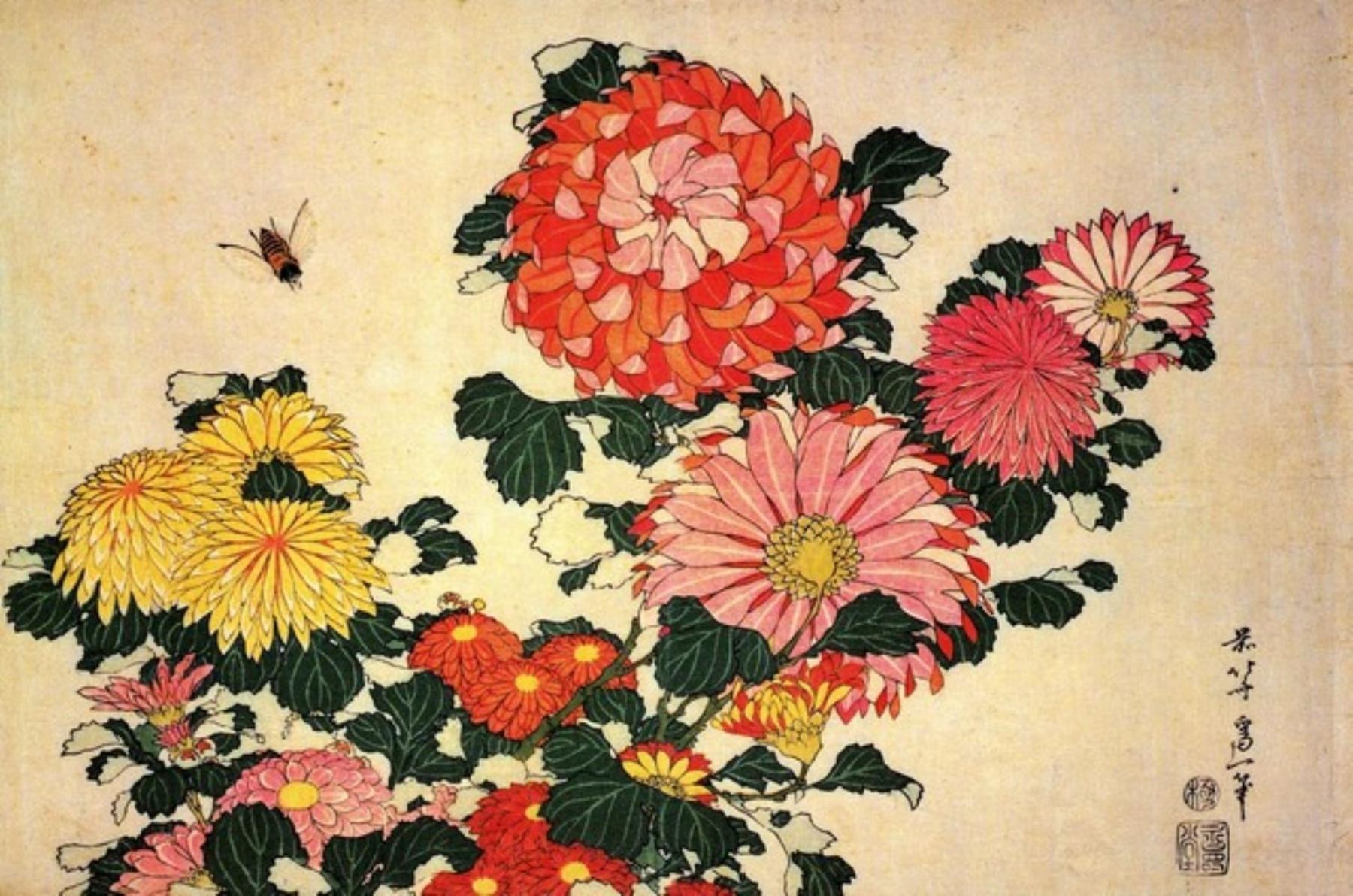 Artist: Katsushika Hokusai - Title: Chrysanthemum and Bee - Medium: Fine Art Giclee on Canvas - Image Size: Approximately 13.25 inches x 20 inches - Unframed on Unstretched Canvas - Biography: ( c. 31 October 1760 - 10 May 1849), known simply as Hokusai, was a Japanese artist, ukiyo-e painter and printmaker of the Edo period. Born in Edo (now Tokyo), Hokusai is best known as author of the woodblock printseries Thirty-six Views of Mount Fuji which includes the internationally iconic print, The Great Wave off Kanagawa.