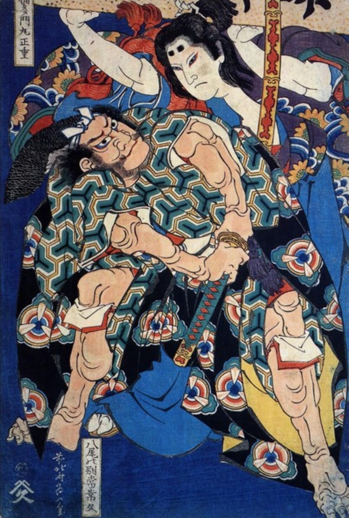 Artist: Katsushika Hokusai - Title: Kusunuki Tamonmaru - Medium: Fine Art Giclee on Canvas - Image Size: Approximately 20 inches x 13.5 inches - Unframed on Unstretched Canvas - Biography: ( c. 31 October 1760 - 10 May 1849), known simply as Hokusai, was a Japanese artist, ukiyo-e painter and printmaker of the Edo period. Born in Edo (now Tokyo), Hokusai is best known as author of the woodblock printseries Thirty-six Views of Mount Fuji which includes the internationally iconic print, The Great Wave off Kanagawa.