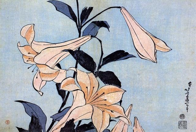 Artist: Katsushika Hokusai - Title: Lilies - Medium: Fine Art Giclee on Canvas - Image Size: Approximately 21.5 inches x 32 inches - Unframed on Unstretched Canvas - Biography: ( c. 31 October 1760 - 10 May 1849), known simply as Hokusai, was a Japanese artist, ukiyo-e painter and printmaker of the Edo period. Born in Edo (now Tokyo), Hokusai is best known as author of the woodblock printseries Thirty-six Views of Mount Fuji which includes the internationally iconic print, The Great Wave off Kanagawa.