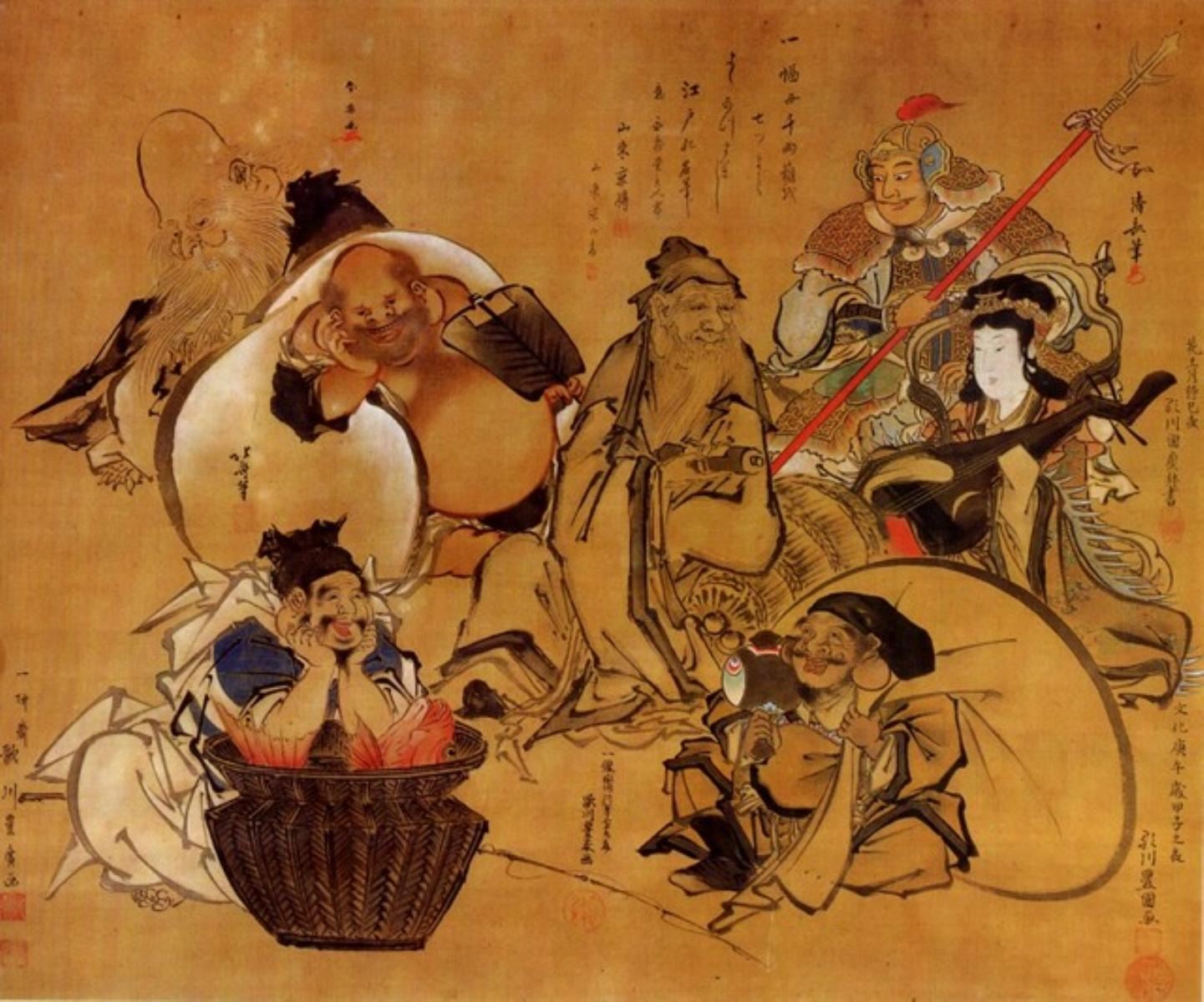 Artist: Katsushika Hokusai - Title: Seven Gods of Fortune - Medium: Fine Art Giclee on Canvas - Image Size: Approximately 16.5 inches x 20 inches - Unframed on Unstretched Canvas - Biography: ( c. 31 October 1760 - 10 May 1849), known simply as Hokusai, was a Japanese artist, ukiyo-e painter and printmaker of the Edo period. Born in Edo (now Tokyo), Hokusai is best known as author of the woodblock printseries Thirty-six Views of Mount Fuji which includes the internationally iconic print, The Great Wave off Kanagawa.