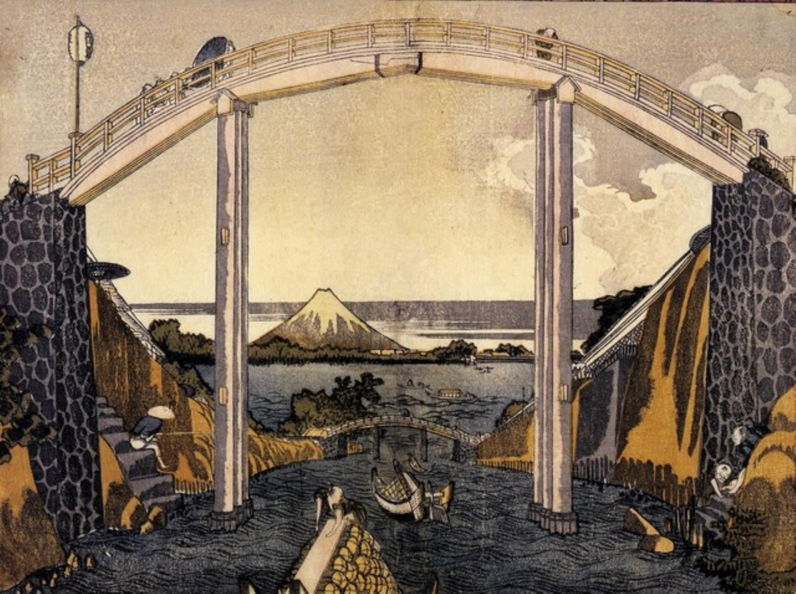 Artist: Katsushika Hokusai - Title: View of Mount Fuji - Medium: Fine Art Giclee on Canvas - Image Size: Approximately 15 inches x 20 inches - Unframed on Unstretched Canvas - Biography: ( c. 31 October 1760 - 10 May 1849), known simply as Hokusai, was a Japanese artist, ukiyo-e painter and printmaker of the Edo period. Born in Edo (now Tokyo), Hokusai is best known as author of the woodblock printseries Thirty-six Views of Mount Fuji which includes the internationally iconic print, The Great Wave off Kanagawa.