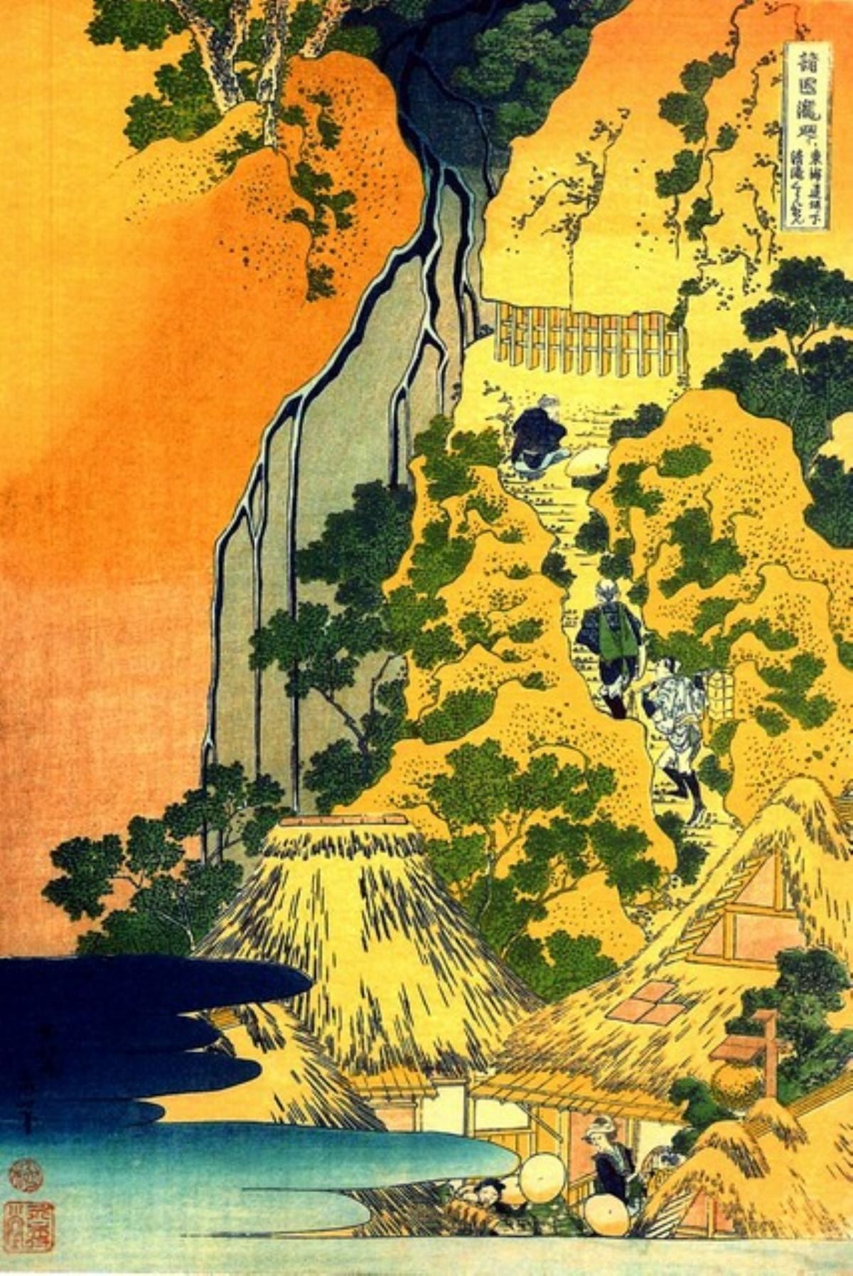 Artist: Katsushika Hokusai - Title: Waterfalls in all Provinces - Medium: Fine Art Giclee on Canvas - Image Size: Approximately 20 inches x 13.5 inches - Unframed on Unstretched Canvas - Biography: ( c. 31 October 1760 - 10 May 1849), known simply as Hokusai, was a Japanese artist, ukiyo-e painter and printmaker of the Edo period. Born in Edo (now Tokyo), Hokusai is best known as author of the woodblock printseries Thirty-six Views of Mount Fuji which includes the internationally iconic print, The Great Wave off Kanagawa.