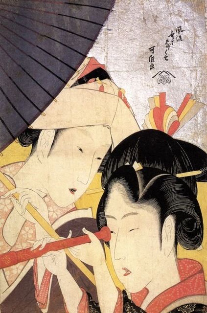 Artist: Katsushika Hokusai - Title: Young Woman Looking Through a Telescope - Medium: Fine Art Giclee on Canvas - Image Size: Approximately 32 inches x 21 inches - Unframed on Unstretched Canvas - Biography: ( c. 31 October 1760 - 10 May 1849), known simply as Hokusai, was a Japanese artist, ukiyo-e painter and printmaker of the Edo period. Born in Edo (now Tokyo), Hokusai is best known as author of the woodblock printseries Thirty-six Views of Mount Fuji which includes the internationally iconic print, The Great Wave off Kanagawa.