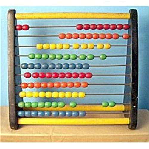 A real honest to goodness counting frame in very good condition. Colors are bright, some paint loss, mostly on cross bar at the top, which is how it was carried. This is not a toy, though children will play with it, it is an educational piece, the like of which your parents and grandparents learned to count. I've been told that there are still schools in European countries where they are used today. This one is good and solid and in great shape. A real find !!!