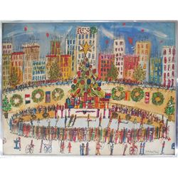 Artist: Susan Pear Meisel, American (1947 - ) Title: Rockefeller Center Christmas Skate Medium: Acrylic on Canvas, signed l.r. Size: 24 x 30 in.