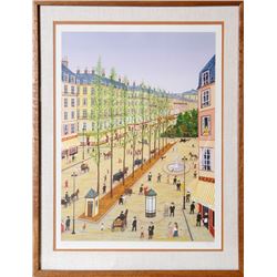 Artist: Francois Ledan, French (1949 - ) Title: French City Street Medium: Lithograph, signed and numbered in pencil Edition: 5/275 Image Size: 2