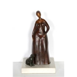 Artist: Branko Bahunek, Croatian (1935 - ) Title: Woman with Dog Year: circa 1990 Medium: Bronze Sculpture, Signature 'BB' inscribed Siz...