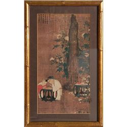 Artist: Japanese Title: Untitled - Children by Tree Medium: Woodcut Image Size: 17 x 9 inches Frame Size: 21.5 x 13.5 inches