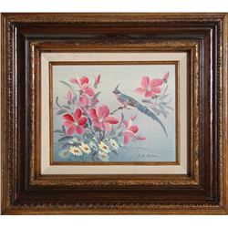 Artist: C.K. Chan Title: Blue Bird Medium: Oil on Board, signed l.r. Size: 8 x 10 in. (20.32 x 25.4 cm) Frame Size: 16 x 18 inches