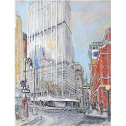 Artist: Kamil Kubik, Czech/American (1930 - 2011) Title: Downtown Manhattan, William and Pine St. Medium: Pastel on Paper, signed l.r. Size: 25.5