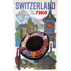 David Klein, Switzerland - Fly TWA, Travel Poster