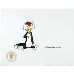 Artist: Warner Brothers Title: Sylvester and Tweety in Looney, Looney, Bugs Bunny Movie Year: 1981 Medium: Hand-Painted Production Cel Size: 10.