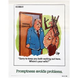Artist: Jim Unger, British/Canadian (1937 - 2012) Title: Herman - Promptness Avoids Problems Year: 1983 Medium: Poster Size: 22 x 17 in. (55.88
