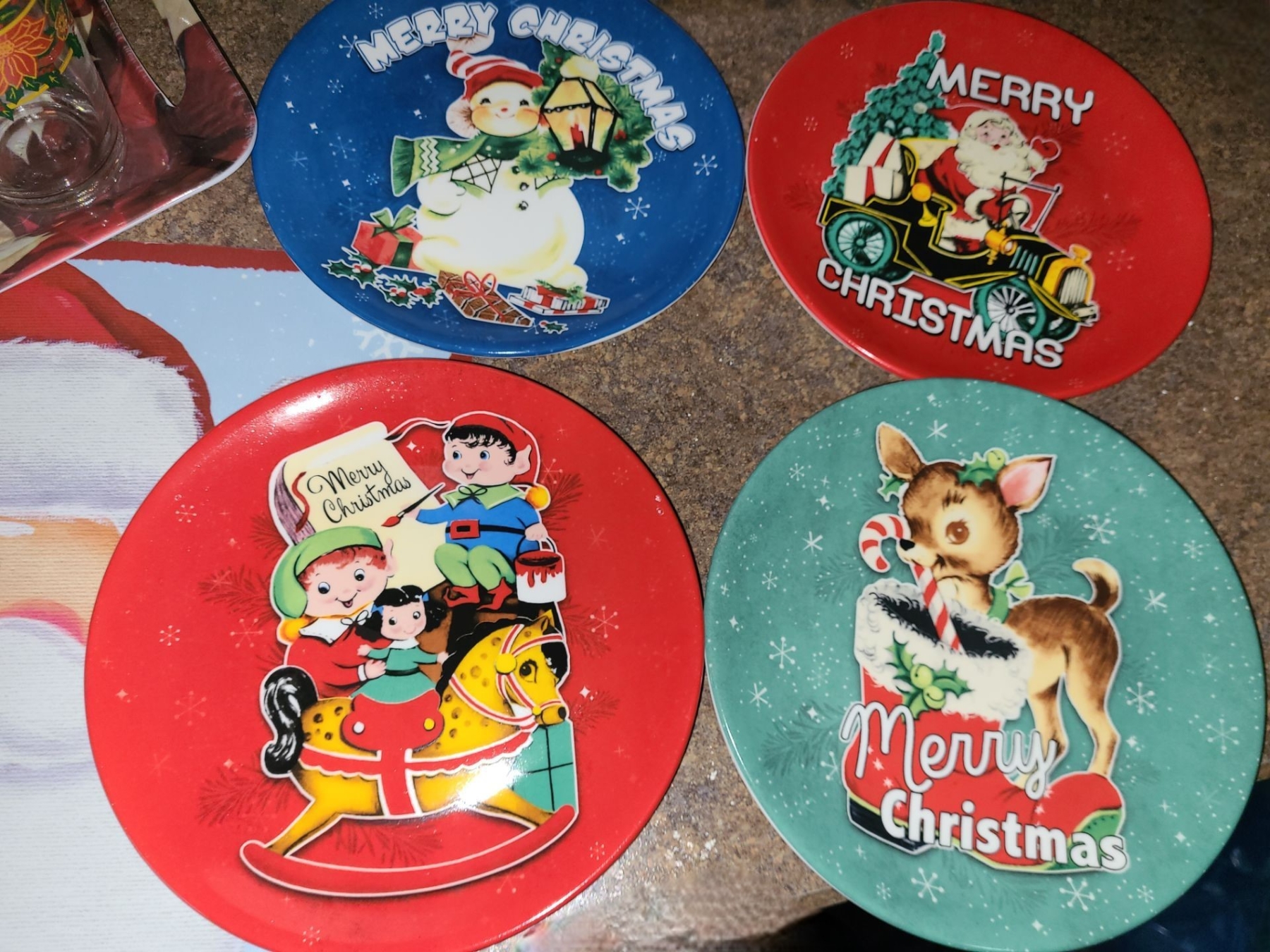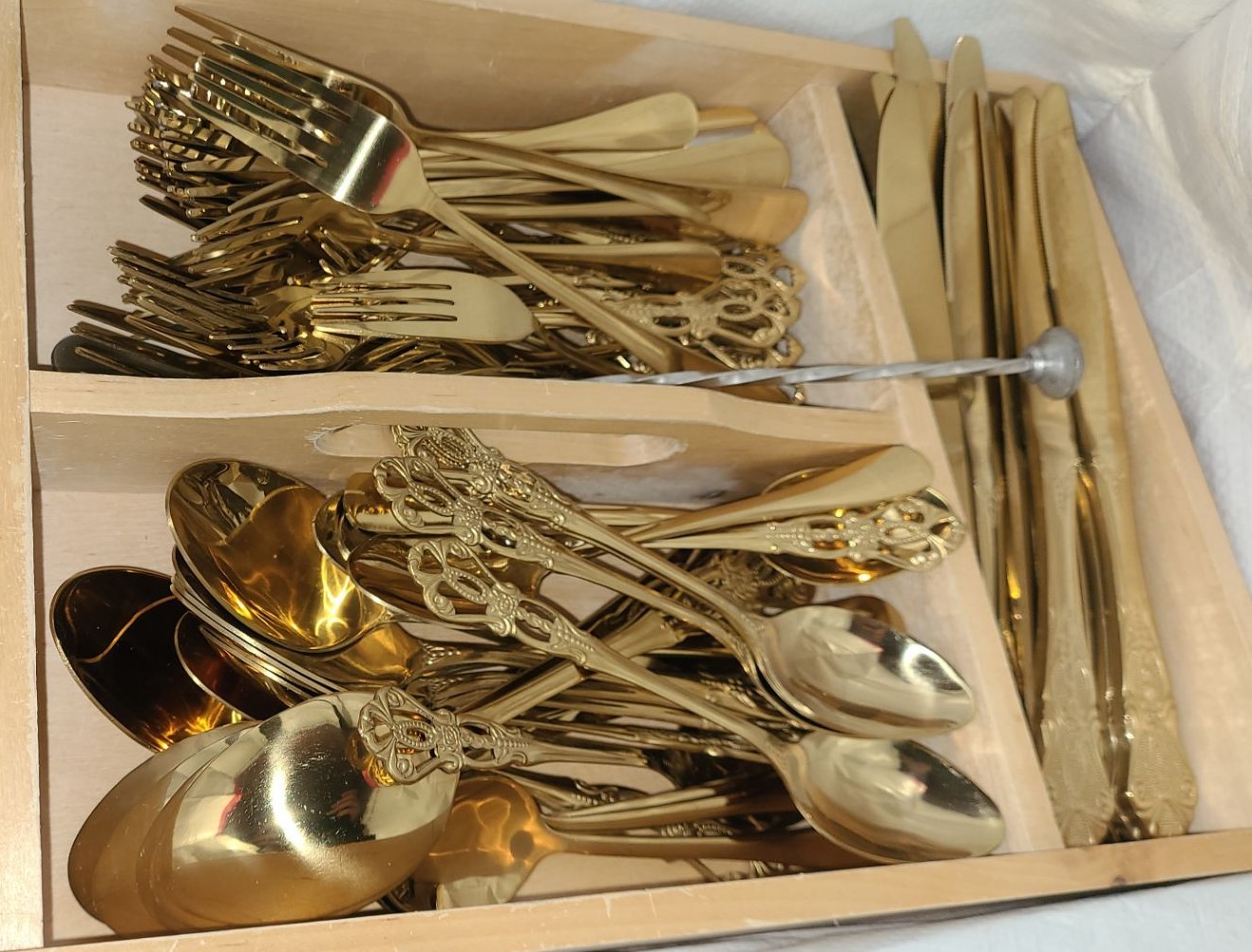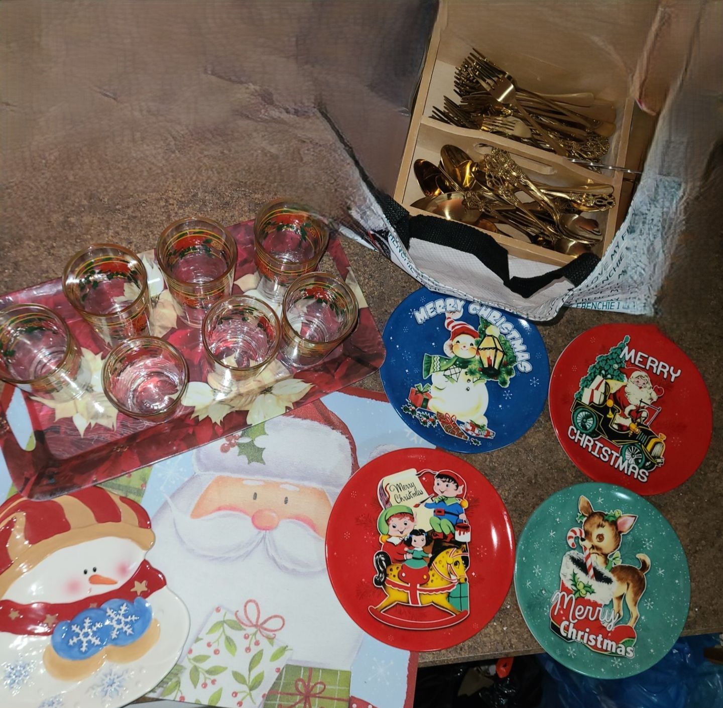Holiday Tableware Includes: Plates, Glasses and Golden Cutlery